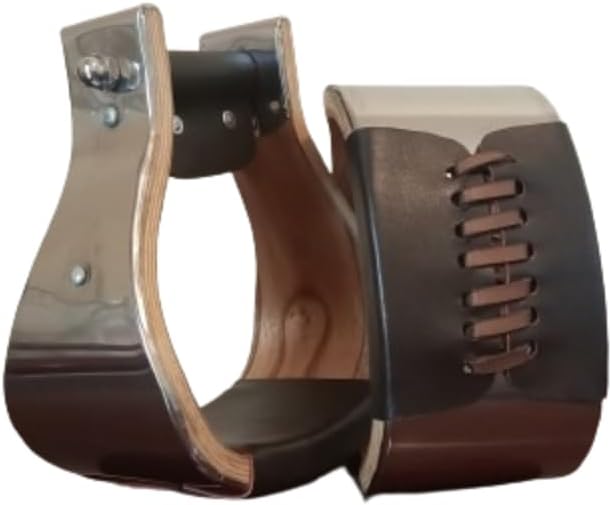 Craft Colt Wooden Wide Western Steel & Leather Covered Stirrups, Wooden Bell Saddle Stirrups