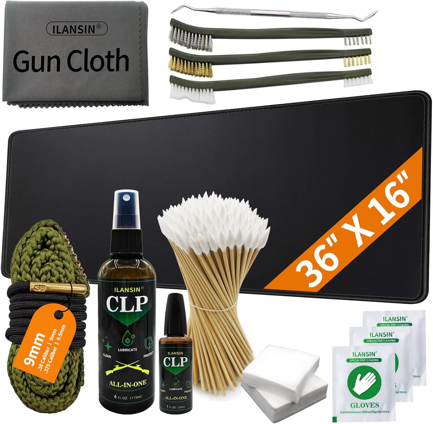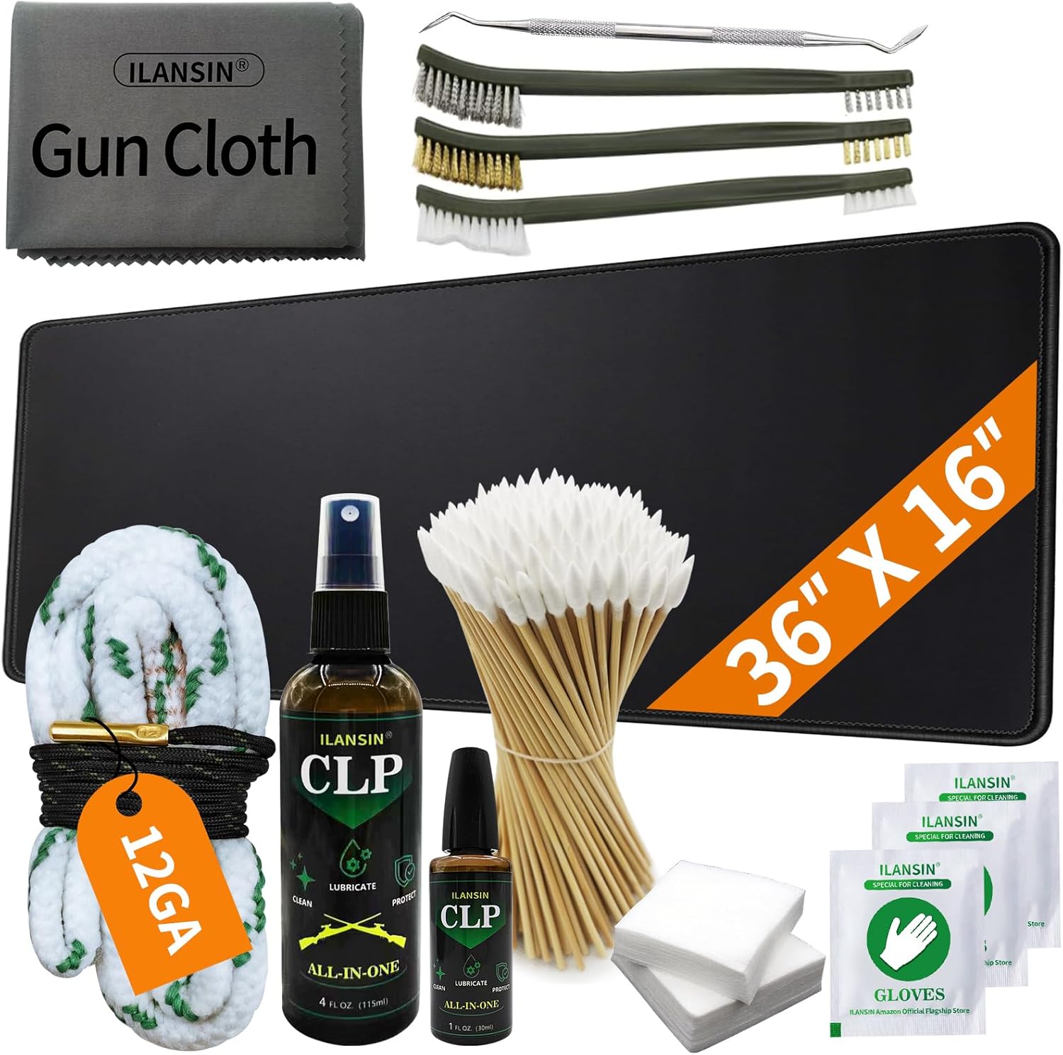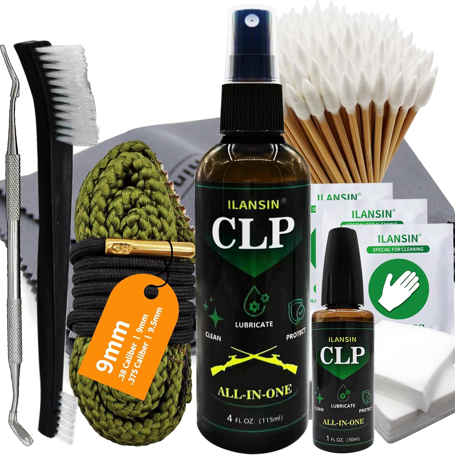 | Included Components | 12GA Bore Cleaning Snake, 30ml Needle CLP, 115ml Spray 100 Patches, Swabs, 3PCS Brushes (Soft Nylon, Medium Blue Hard Scrubbing Bronze), 1PC Steel Pick, 3 Pairs Gloves, Gun Cloth, Toolbox |