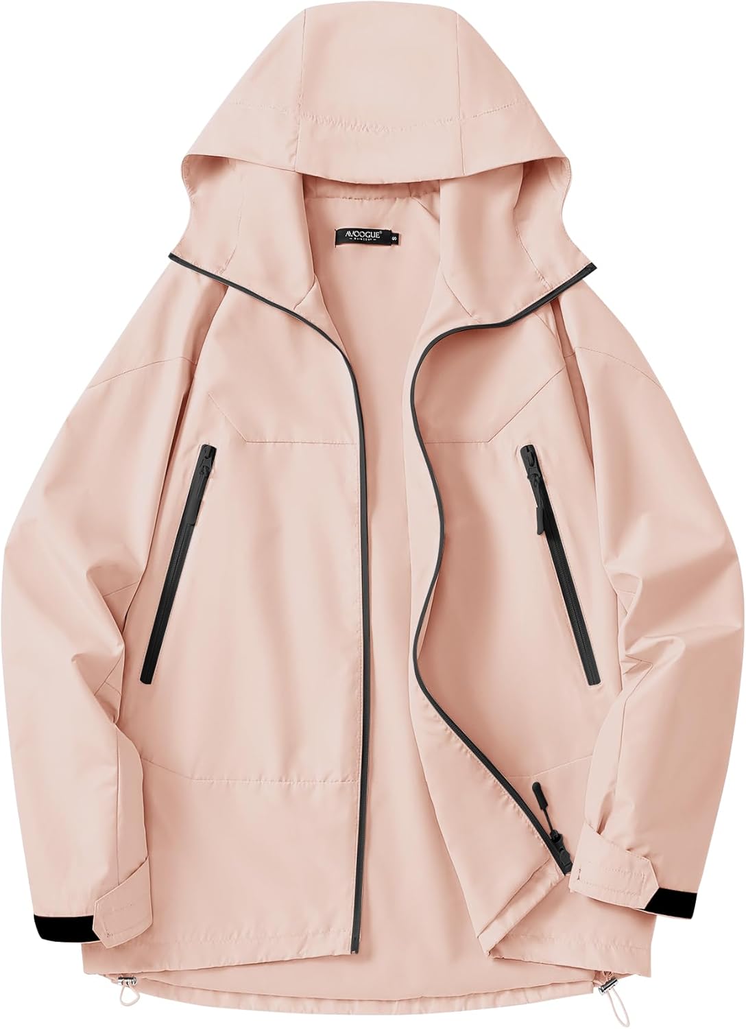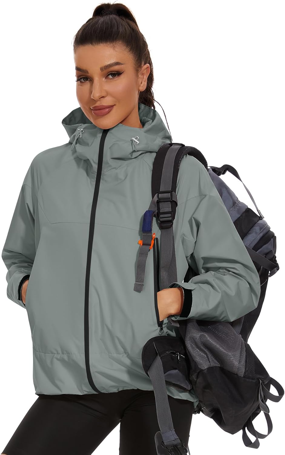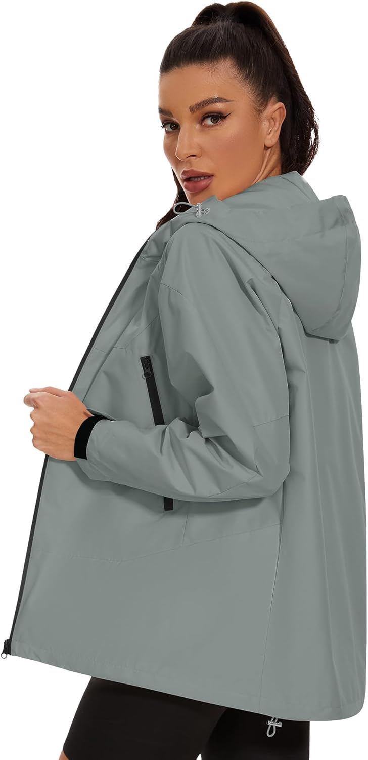 Size Chart (inches):Size S: Bust : 114cm/44.9" --- Hip : 118cm/46.5" --- Sleeve : 21.5cm/8.5" --- Back Length: 73cm/28.7"Size M: Bust : 120cm/47.2" --- Hip: 124cm/48.8" --- Sleeve : 22.5cm/8.9" --- Back Length: 74cm/29.1"Size L: Bust : 128cm/50.4" --- Hip: 132cm/52.0" --- Sleeve :23.5cm/9.3" --- Back Length:75.5cm/29.7"SizeXL: Bust : 137cm/53.9" --- Hip: 141cm/55.5" --- Sleeve : 24.5cm/9.6" --- Back Length: 77cm/30.3"【Rain Jackets Material】The rain coats for women is made of 100% polyester shell, non-mesh cotton lining design is not easy to stick to your body. Windproof and rainproof, whether it's light rain or snow, it will keep you dry all day long.【Rain Coat Desing】(1) All zips on the outside of the rain jacket are sealed waterproof zips. (2) The deep zip pockets on the side not only can over hold a lot of items, but also won't interfere with the pockets when you carry a climbing bag on your back. (3) The drawstring design of the hood and hem makes it easy to adjust the size of the jacket as well as the hood.【Size Note】 This rain jackets for women waterproof is designed for a loose fit, making it easy to layer clothes underneath the jacket. If you prefer a slimmer fit, please choose a size smaller.Please refer to the size chart on the left or the detailed sizing information below the product description when purchasing.【Occasion】 Suitable for mountaineering, running, travelling, cycling, hiking, sports, walking and other outdoor activities.【Season】: Great for spring, summer,fall, or winter days.【Size Map】:S,M, L, XL,XXL . It fits perfect without being too clingy, frumpy & wide.【Raincoat Care】 The windbreaker jacket with hood is recommended to be hand-washed, machine washing is easy to damage the waterproof fabric, ironing and bleaching are prohibited.