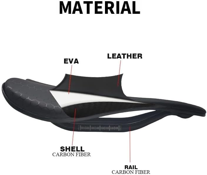 TYEMLM Carbon+Leather Road Bike Saddle MTB Bicycle Saddles Mountain Bike Racing Saddle PU Breathable Soft Seat Cushion Carbon Rails
