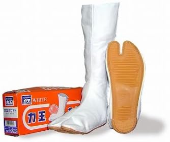 Imported from Japan, these jikatabi feature all of the exceptional qualitys you would expect in authentic Japanese jikatabi. These calf height jikatabi feature 12 kohaze (metal tab) fastening, extra-durable double stitched rubber soles for improved durability, reinforced material at toes and sides of foot, and 4 levels of sizing for the back of the calf. Don't settle for cheaper immitations. Another great feature of these tabi is their 100% cotton construction which means the White Jikatabi can easily be dyed to any color using a high quality dye. Don't settle for cheaper immitations. We offer whole sizes only. If you're concerned about a tight fit we recommend Tabi Socks.