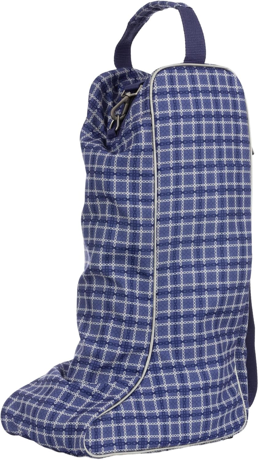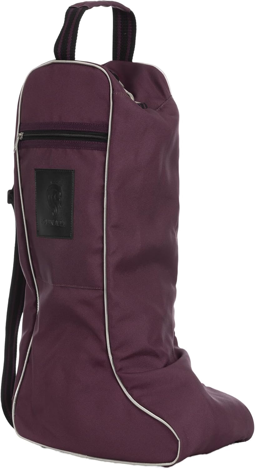 Keep your boots clean, easy to store and ready for travel with this bag from our Darby collection. The Equinavia Darby Boot bag is made from easy-care rip-stop nylon designed to accommodate most dress and field boots. Convenient side pocket is ideal for storing socks and other essentials. The rigid bottom ensures stability and the full zip allows for easy access. It also features protective padding and a padded center divider to keep your boots safe from scuffs. Carry it using the top handle or the removable shoulder strap as you travel to the stable or competitions.