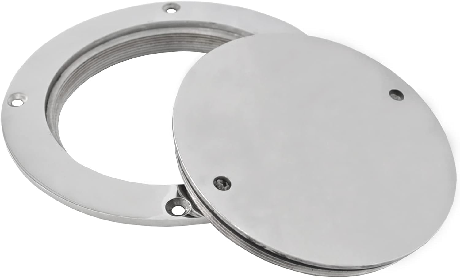 JT-HLM316 Stainless Steel 5inch Round Inspection Deck Plate Specification : Color : Silver Condition : 100% Brand New Item Type :Hatch Deck Plate Material : 316 Stainless Steel Surface Treatment: Mirror Polishing Flange: 175millimetres / 6.89inch Inner Disc Diameter: 133millimetres / 5.24inch Inside of inner plate:127millimetres/5inch Outside of inner plate:135millimetres/5.31inch Outer Hole Centre Distance: 114millimetres / 4.49inch Inner Hole Centre Distance: 110millimetres / 4.33inch Mounting Hole Diameter: 6millimetres / 0.236inch Please refer to the picture for details Feature: Material:316 Marine Grade Stainless Steel looks stylish and prevent corrosion. High strength, bending proof, not easy to damage, which makes it durable and firm. Fine workmanship, mirror polished to a fine luster for a high‑quality addition to your boat deck. Lost Wax process and surface polishing,clean finish, low maintenance costs. Low profiles design ensures the safety of the deck without loss of durability. O-ring sealed deck plates are ideal for interior and exterior applications,which can effectively prevent water from entering. It is easy to install and remove, ideal for boats, marines, and yachts, detachable design, no need for professional installation skills, and complicated tools. The installation is simple and does not require complicated operations. Built to meet standard specification, strictly follow factory quality control. Application: Universal design fits a wide variety of boat deck. It can be used as decorative openings in cabinets, doors, drawers, walls, rudders, countertops and many other positions, with a wide range of applications. Package Includes: 1 Pcs 5inches Hatch Deck Plate Note: ▪ Color may be slightly different from the pictures because
