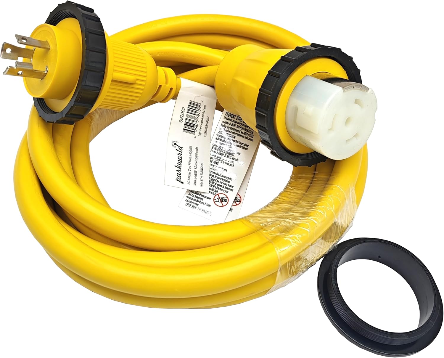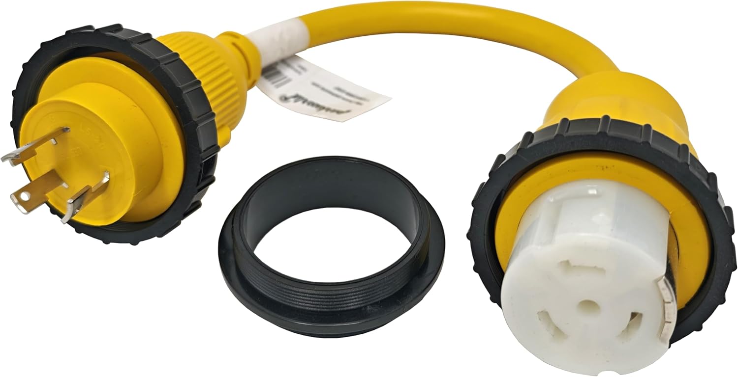 NEMA L5-30P to SS2-50R adapter cordIf you need to connect your 50A extension cord (with SS2-50 plug) into 30A shore power twist lock outlet (for L5-30 locking with seal ring type) to get power. This power adapter cord can help you to solve your requirement. Length : 1, 10, 16, 25, 50 Feet