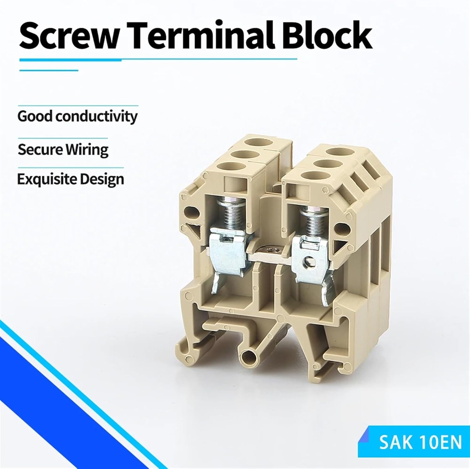 Wire Terminals10Pcs SAK-10EN Wire Conductor Connector Screw Connection Din Rail Terminal Blocks SAK10EN