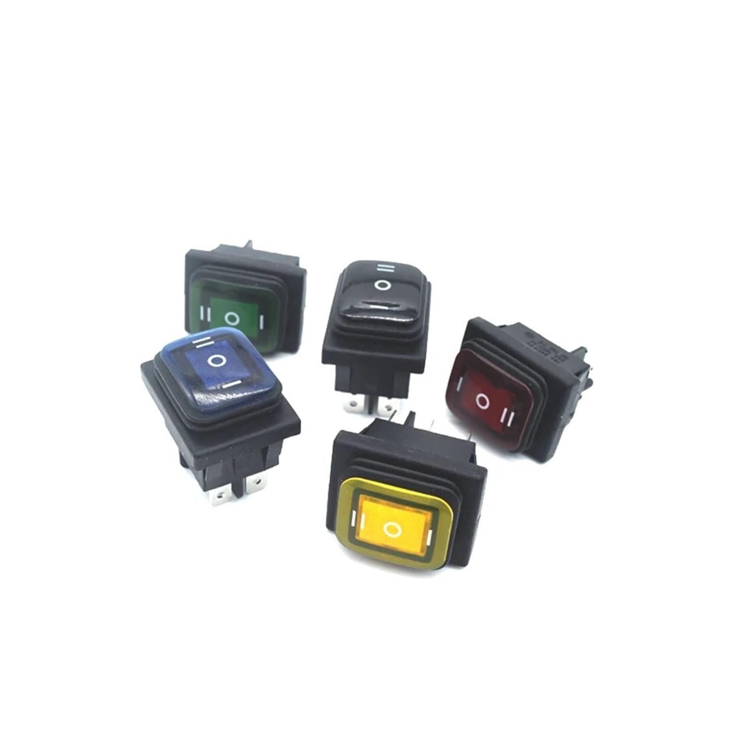 SwitchesSwitch is 6P pin 3 file rocker self-reset 5 color optionalWide range of applications, including a variety of car models, ships, etc., integrated waterproof and dustproof, good vibration resistance, reliable quality.The pins are brass H62 and silver plated for oxidation resistance and long life.Rated current: 16ARated power: 3000WIndicator light: LEDLight color: red / yellow / blue / black (no LED) / greenSize: 22*28mm (reference product size)Mechanical life: more than 100,000 times==========Current : 16AMaterial : PlasticSwitch Type : Rocker SwitchModel Number : KCD4Features : waterproof&Three-speedItem Type : SWITCHESWaterproof : Multiple WaterproofFlexibility : Fast ReactionMaterial characteristics : Anti-oxidationDust-proof : Dust-proofMechanical behavior : Vibration ResistanceGear position : Three-speedPINS : 6PINS