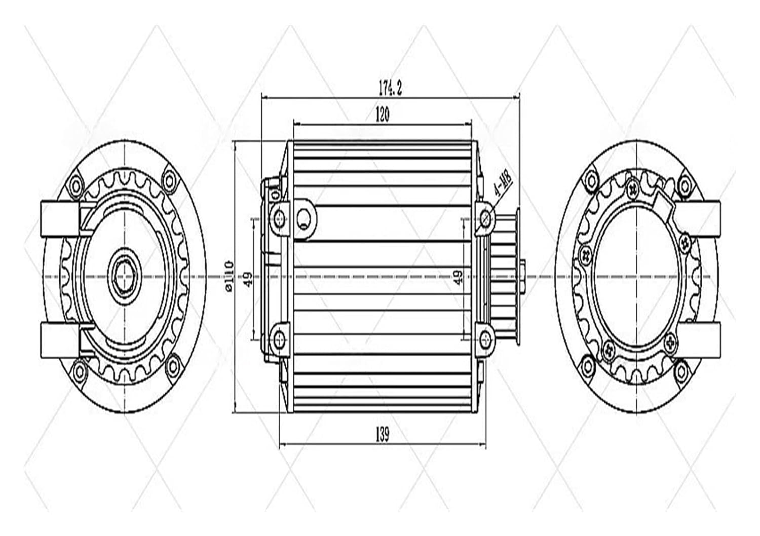 controller1 pc x QS90 1KW Mid Drive Motor (Belt or Sprocket Type)1 pc x EM-50-4 Controller with USB CableMatched Wheel: 10inch Wheel (as default)Magnet Height: 70mm 5 pole pairsRated Power: 1000WRated Voltage: 60VSpeed: 2900RPM (basic RPM) 3500RPM peak with flux weakeningMax Torque: approx 25.2N.mMax Efficiency: 93%Single Hall Plate with waterproof connectors6mm² Cross Section of Phase Wire (not include insulation layer)Hall Sensor Phasing angle: 60 degree1) Model: EM-50-42) Available Battery Voltage: 48V-72V3) Available Motor Power: 800W-1200W4) DC Current: 50A5) Boost Current: 80A6) Peak Phase Current: 185A7) Working Communication: Hall Sensor8) Size: 181mm * 94mm * 50mm9) Weight: 0.95kg10) Defaut Throttle Working Voltage: 0V - 5V11) Material: Aluminum12) Controller Design: Brushless DC Motor Controller13) Support Programmable by PC