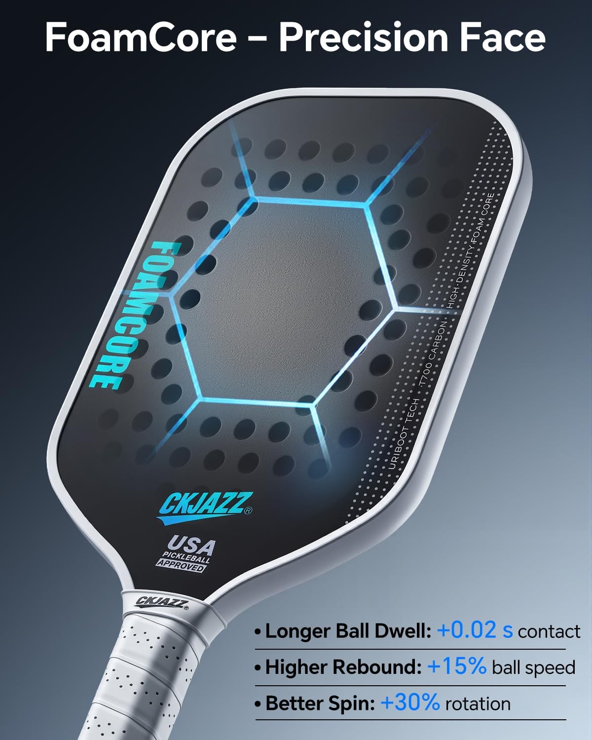 100% Foam Core Pickleball Paddle – Carbon Fiber, USAPA Approved for Spin & ControlThe CKJAZZ FoamCore Pickleball Paddle is built for players who want more from their game. Its precision-engineered foam core and carbon fiber face redefine how a pickleball paddle feels—solid, consistent, and responsive. The unibody frame construction enhances structural integrity and energy return, helping pickleball athletes perform with clarity and control. Whether you’re training, competing, or mastering your shot mechanics, FoamCore delivers the same trusted response match after match. CKJAZZ – Precision is Power.