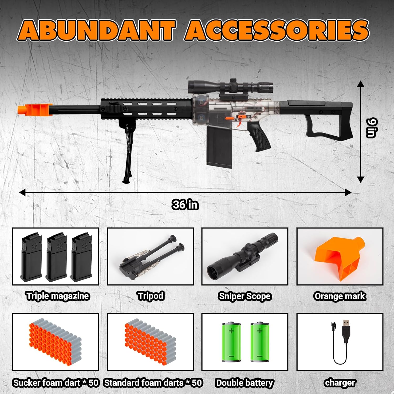 Realistic Toy Gun for Nerf Guns Darts - Electric Sniper Rifle Automatic Foam Blaster with Scope 100 Soft Bullets 3 Magazine for Kid Boy Ages 6-12 Years Old, Indoor Outdoor Game Present for Adult Child