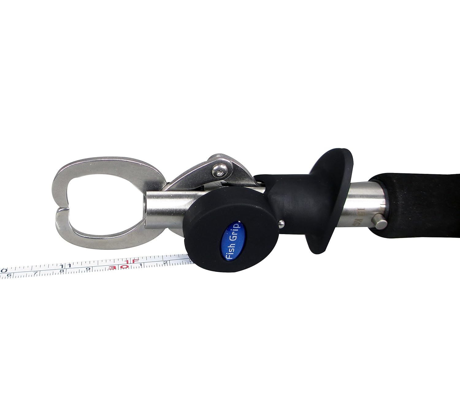 Material: 304 Stainless Steel + ABS + EVA Handle. Grip Hooks: two stainless steel spring loaded grip hooks keep a tight hold on any items you wish to grasp. Stainless steel body provides and extends both longevity and durability, Strong corrosion resistant fish gripper jaw, great fishing gear for fresh water fishing and saltwater fishing with a non-slip EVA foam handle. An adjustable wrist strap ensure the product will never slip out of your hand during use. Fishing tackle fish gripper comes with a holster and lanyard. Grip swivel independently of handle for safe and secure handing of fish. Convenient Scale: a built-in 15 kg (33 lb.) scale will weigh anything the grip hook are holding, You can measure the weight for your catch quickly and easily. The soft and narrow measuring tape does no harm when catching & releasing. Ruler length: approx. 1m / 3ft. Dimensions: 245 x 50 x 30 mm (9.65 x 1.97 x 1.18 in) Item Number PDSA0370