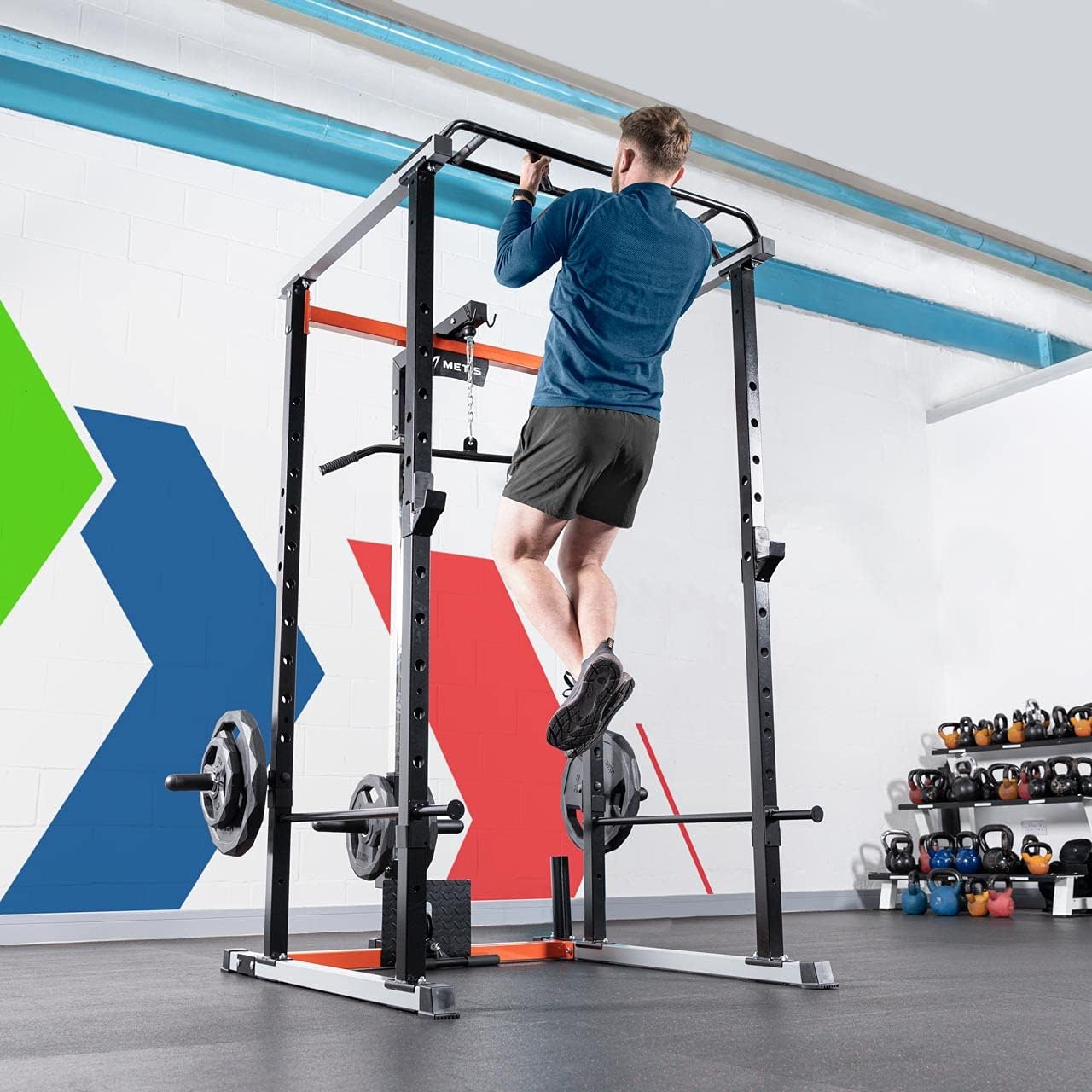 METIS POWER CAGE SPECIFICATIONSWHAT YOU GET:1x Steel Squat Rack2x Rubber Protected J-Hooks2x Dip Bars2x Steel Safety Catchers2x 2in Weight Plate Storage2x 2in Weight Plate Locking Collars1x Pull Up BarUPGRADE OPTION: Upgrade to include a high-quality cable pulley system (includes narrow row bar & wide lat pull down bar)DIMENSIONS:Rack Size (Overall): 96in x 56in x 44in | 217cm x 143cm x 111cmWeight Plate Storage (Diameter): 2in | 5cmRack Weight: 74kg | 163lbsUpright Pillars Max Load: 400kg | 882lbDip Bar Max Load: 140kg | 309lbPull Up Bar Max Load: 120kg | 265lbPulley System Max Load: 90kg | 198lbMATERIALS:Rack Frame: Heavy-duty Q235 steel (2x2in - 0.07in thick)Dip Bars & Plate Storage: Steel interior with ABS plastic exteriorJ-Hooks: Robust ABS plastic with protective rubber coatingSafety Catchers: Premium-grade steelPull Up Bar: Premium steel with knurled grip for increased comfortPulley System Shaft (Upgrade Option): Increased strength chromeRow Bar & Lat Pull Down Bar (Upgrade Option): Ergonomic ABS plastic handlesMISCELLANEOUS:J-Hooks, Dip Bars & Plate Storage can be adjusted to different heights (increments of 4.3in)We recommend always using the power cage with a partner watchingWe recommend seeking professional technique advice before using the cage and/or attempting any liftsWe recommend you DO NOT swing on the pull up bar