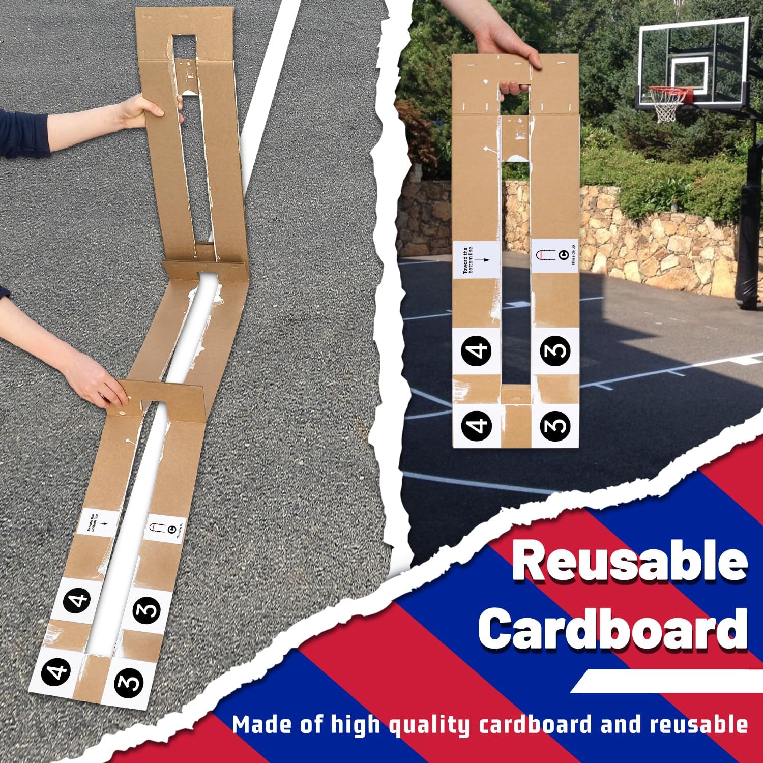 Basketball Court Stencil, Driveway Basketball Court Marking Kit, Clear Instruction Easy to Set up Reusable Cardboard Basketball Court Stencil