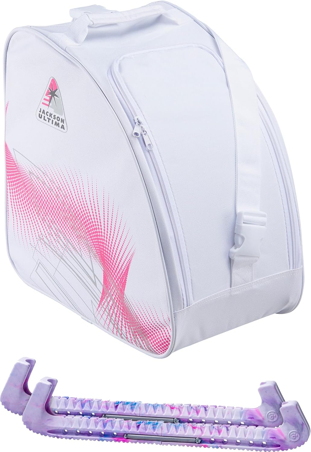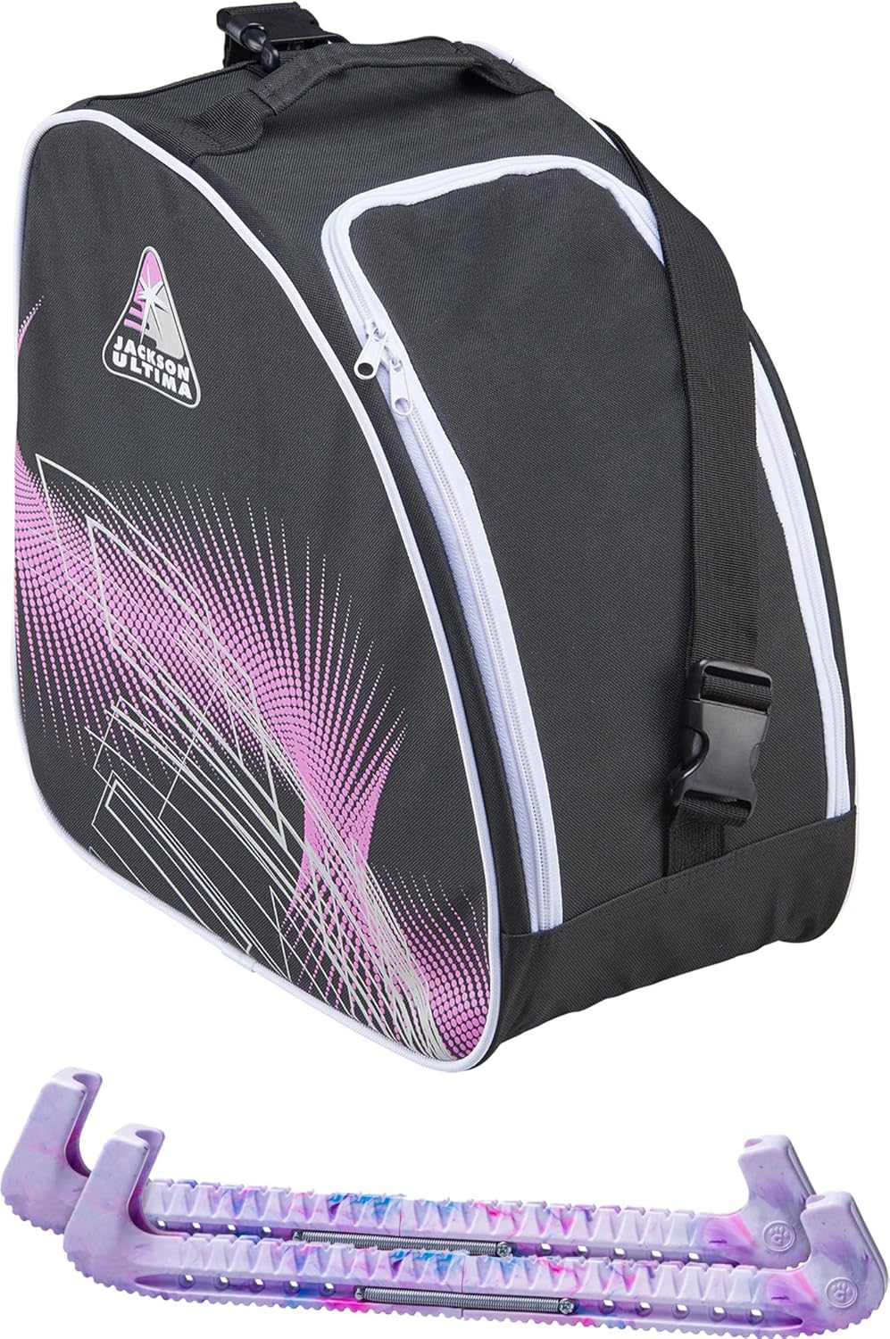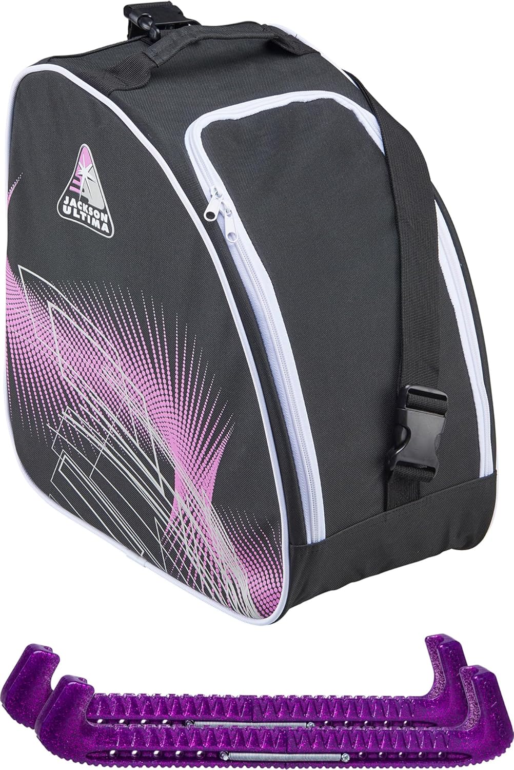 BUNDLE: Experience Ultimate Convenience and Style with the Jackson Ultima Pink Bag JL350 & Skate Guards Bundle Elevate your skating experience with the Jackson Ultima Bag JL350, a sleek and functional accessory designed for the modern skater. This oversized bag offers ample space, ensuring all your skating essentials are organized and easily accessible. Paired with the vibrant Skate Guards from Guardog, this bundle not only provides exceptional protection for your skates but also adds a splash of color to your skating gear. The skate guards are known for their durable construction and fashionable design, making them a favorite among skaters of all levels.