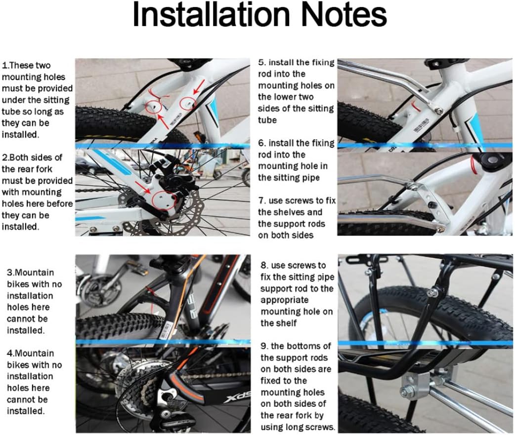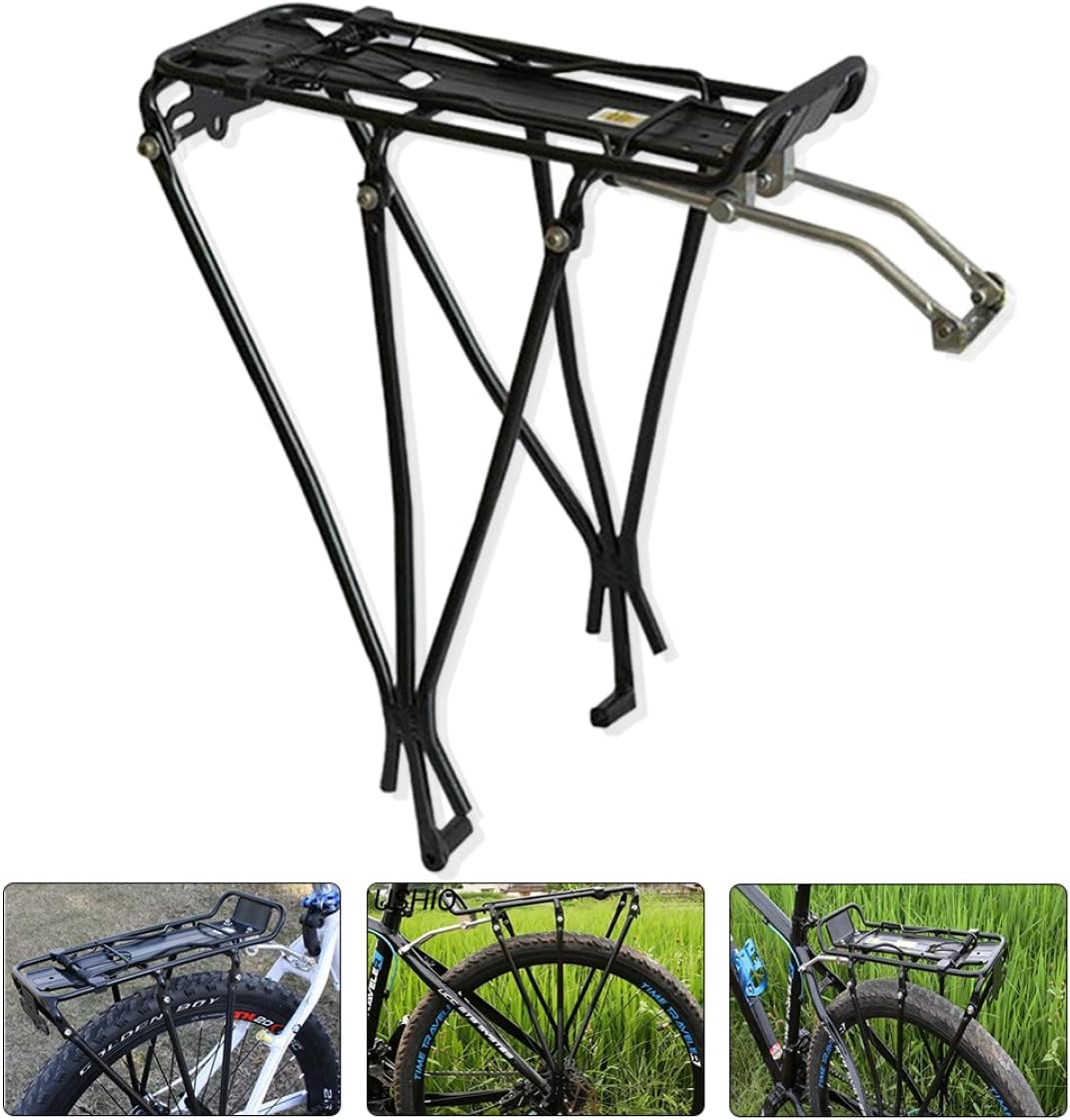 Decription: The maximum rated capacity of the Cargo Rack is 65KG. The Bike Pannier Rack is suitable for disc brake bicycles, and (V brakes can also be used) for 24 "26" 28 "bicycles. The Bike Back Rack is made of aluminum alloy material, and wear-resistant, and not prone to rust. Ensure that all screws are in place and adjusted, and then tighten to prevent screws/holes from peeling off. Feature: Cargo Rack - Color: Black. - Material: Aluminum alloy. - Size: About 34x14x38cm / 13.4x5.5x14.9 inch. Package Including: 1 Set Bike Rear Rack Package Including 1 Set Bike Rear Rack