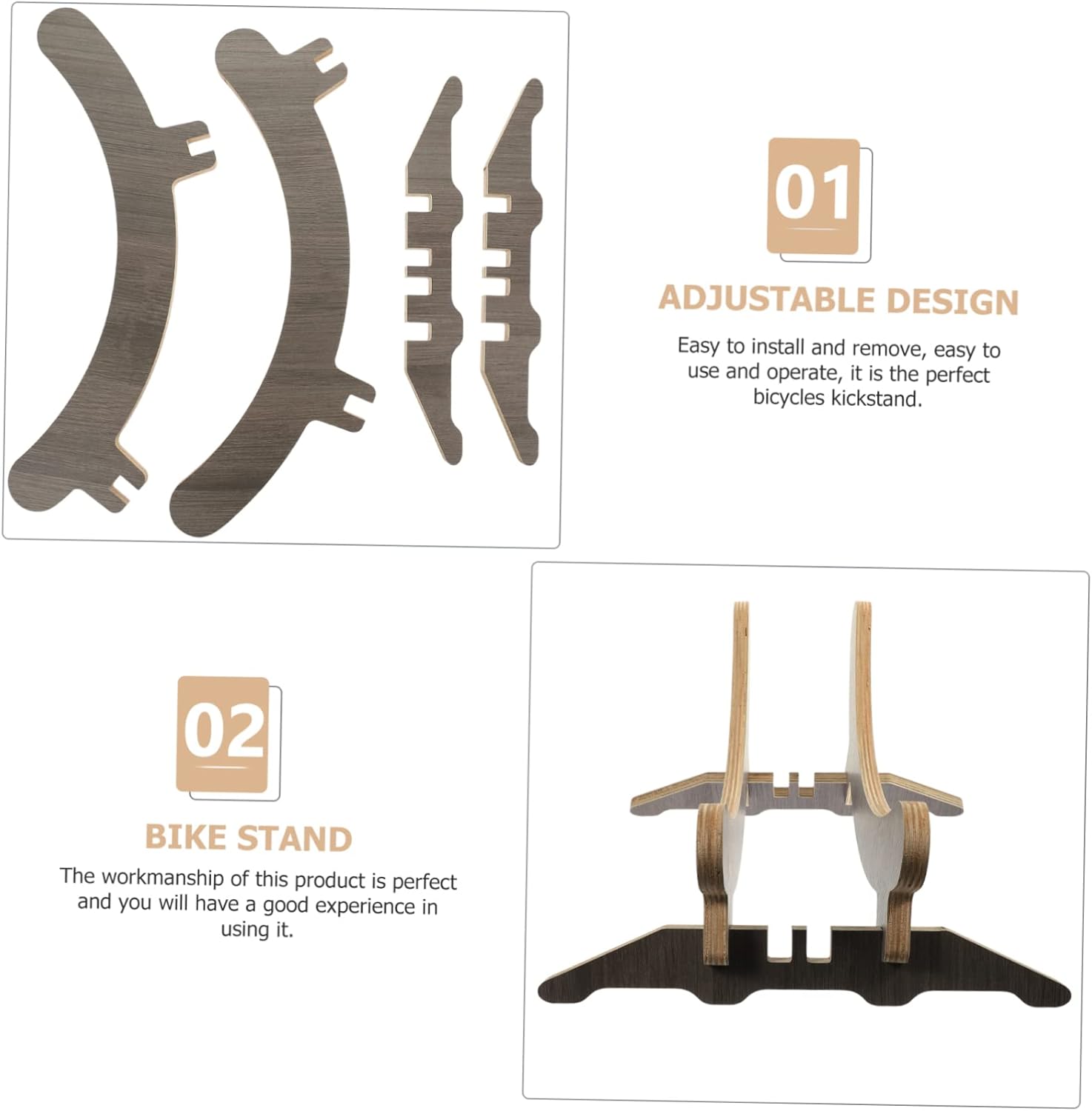 Package Include 1 x Bike Stand Characteristics -Size:52.00X6.00X4.00cm/20.44X2.36X1.57in bike kickstand -Material:Wood rear bike rack -Color:Multi bike stop support -Sturdy, wear- and to break, it can provide stable support for your bike and bring you great convenience kickstand. -Adjustable design makes parking easier. Riders can adjust their bikes to rest at any angle they want and is great for uneven ground bicycles supply. -The workmanship of this product is , and you will have a experience in using it adjustable kickstand. -The side kickstand for bike can be easily and quickly assembled, attach the stand to the bike frame and re-attach and the screws bike rear kickstand. -Easy to install and remove, easy to use and operate, it is the bicycles kickstand parking rack.Goods Informationwood bike kickstand For those who love cycling, this is a choice.parking rack The main body of the bike stand is made of is very solid wood and to break, bike stand won't , It can be used for many years without replacement.bike stand can in the long term of pleasure