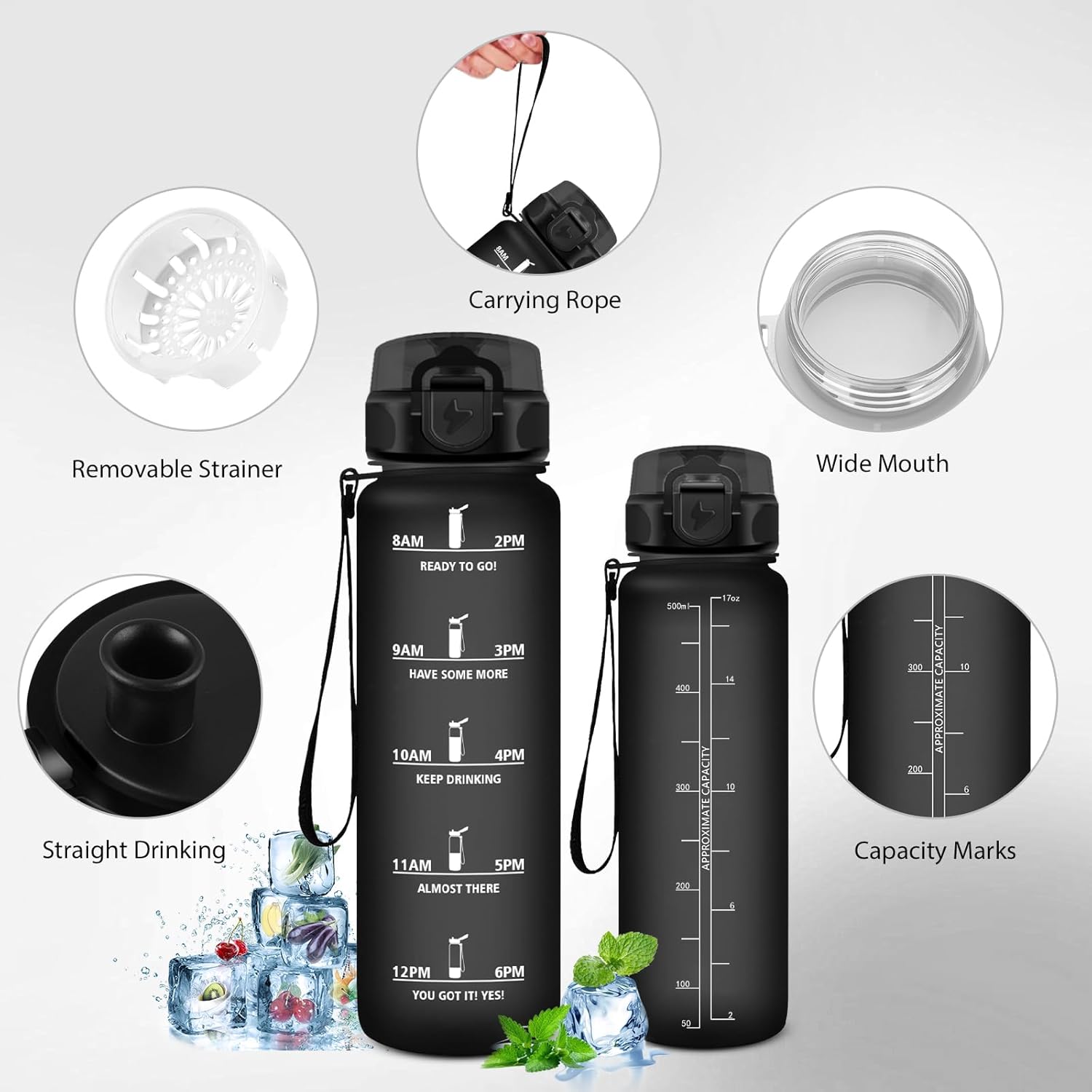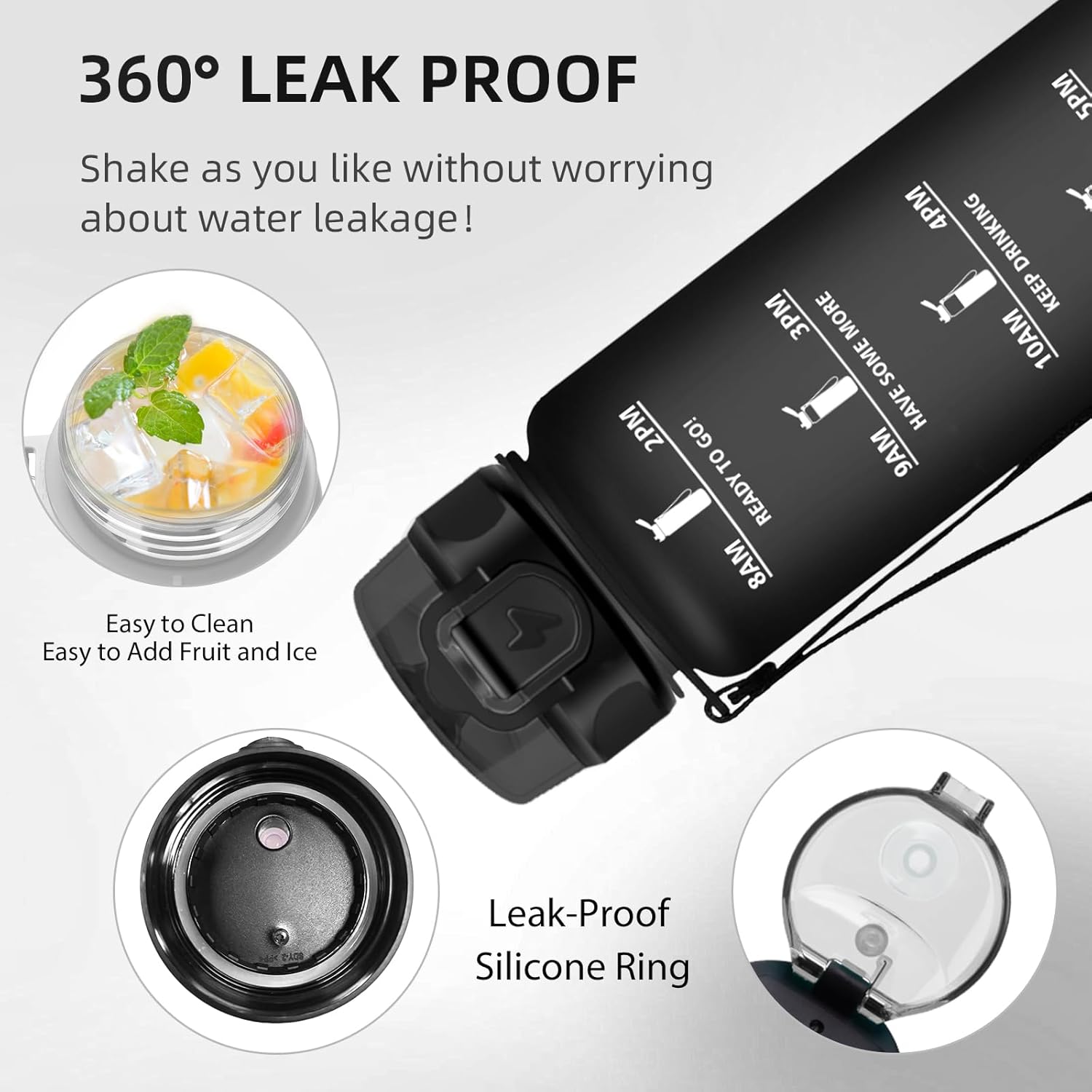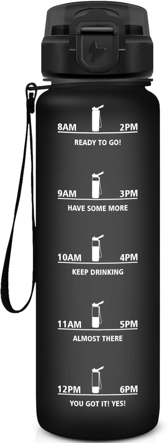 This filter bottle has a capacity of 1000ml and comes with a portable drawstring. It is made of sturdy and durable food-grade plastic, making it perfect for use in the gym, office or outdoors. Motivational water bottle comes in various colors, has a wide mouth perfect for adding ice cubes and is easy to clean. The ideal companion for your daily liquid needs.