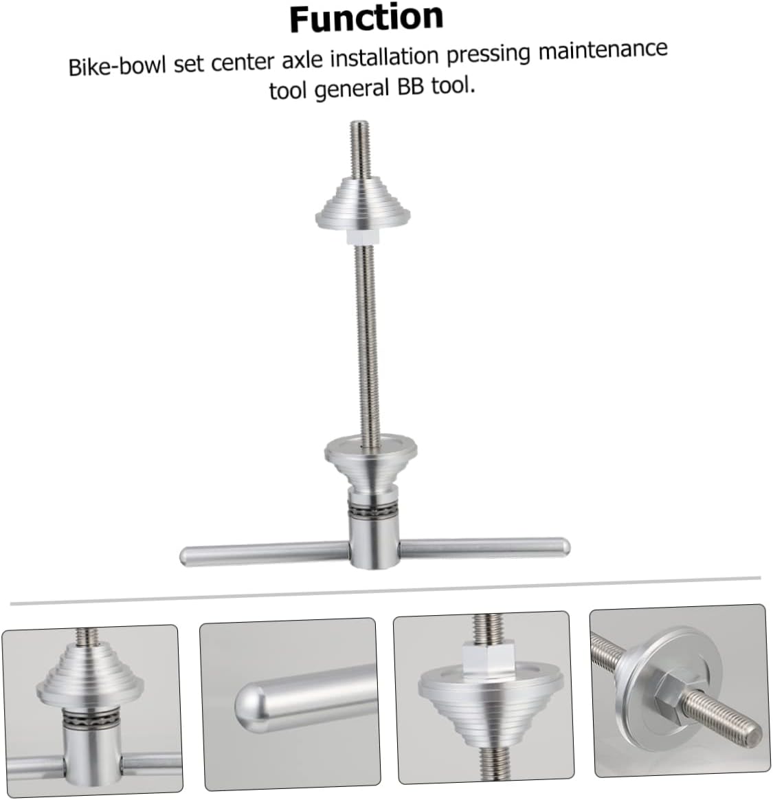 Package Include 1 x bowl set center shaft installation tool Characteristics - Material: Alloy, Stainless steel Bike Repair Tool - Color: Silver Bike Bearing Installer - Size: About 25 x 23 x 5.4cm/9.82 x 9.04 x 2.12inch Tool - Selected alloy and stainless steel, not easy to deform or break Shaft Repair Tool. - The integrated design of flat thrust bearing and joint is more convenient to use Bike Bearing Tool - T-handle is non-slip and detachable Bike Axle Tool. - Made of material, durable and useful Bearing Installer. - Simple in structure, easy to operate Bike Axle Assembly Tool.Goods InformationCenter Shaft Press Tool This product is a pressing tool for bike bowl set.Bearing Installer T-handle is non-slip and detachable.Alloy Bike Repair Tool It is made of and is durable.Axle Tool It can help you to do bike maintenance better.Bike Tool It can transfer powerful torque and make installation easier