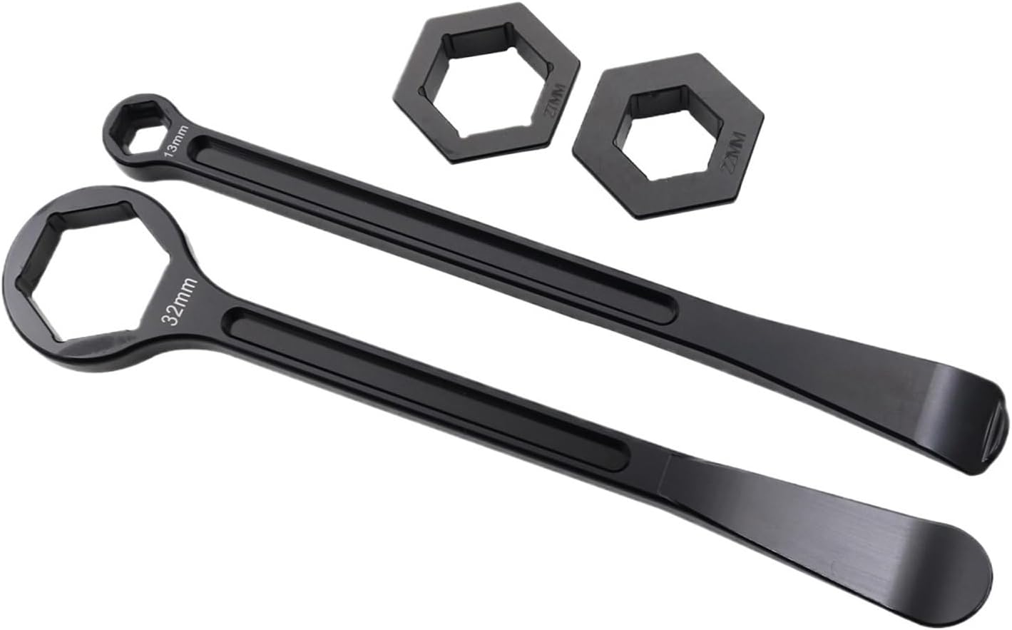 Second wrench has hex box wrench for 32 mm axle nuts on other end--Made from lightweight forged T-6 aluminum--Hard anodized finish--Under 10 inches in length and weigh only 3.5 oz.--Hex ends for axle nuts are rated for a maximum torque of 90 lb/ft--Also allows use on 27mm and 22mm and 32mm axle nutsPackage IncludeStyle A:32mm 27mm 22mm 13mmFitment:Universal fitment part, will fits for most Pit Bike, Dirt Bike, MX Motocross and etc.