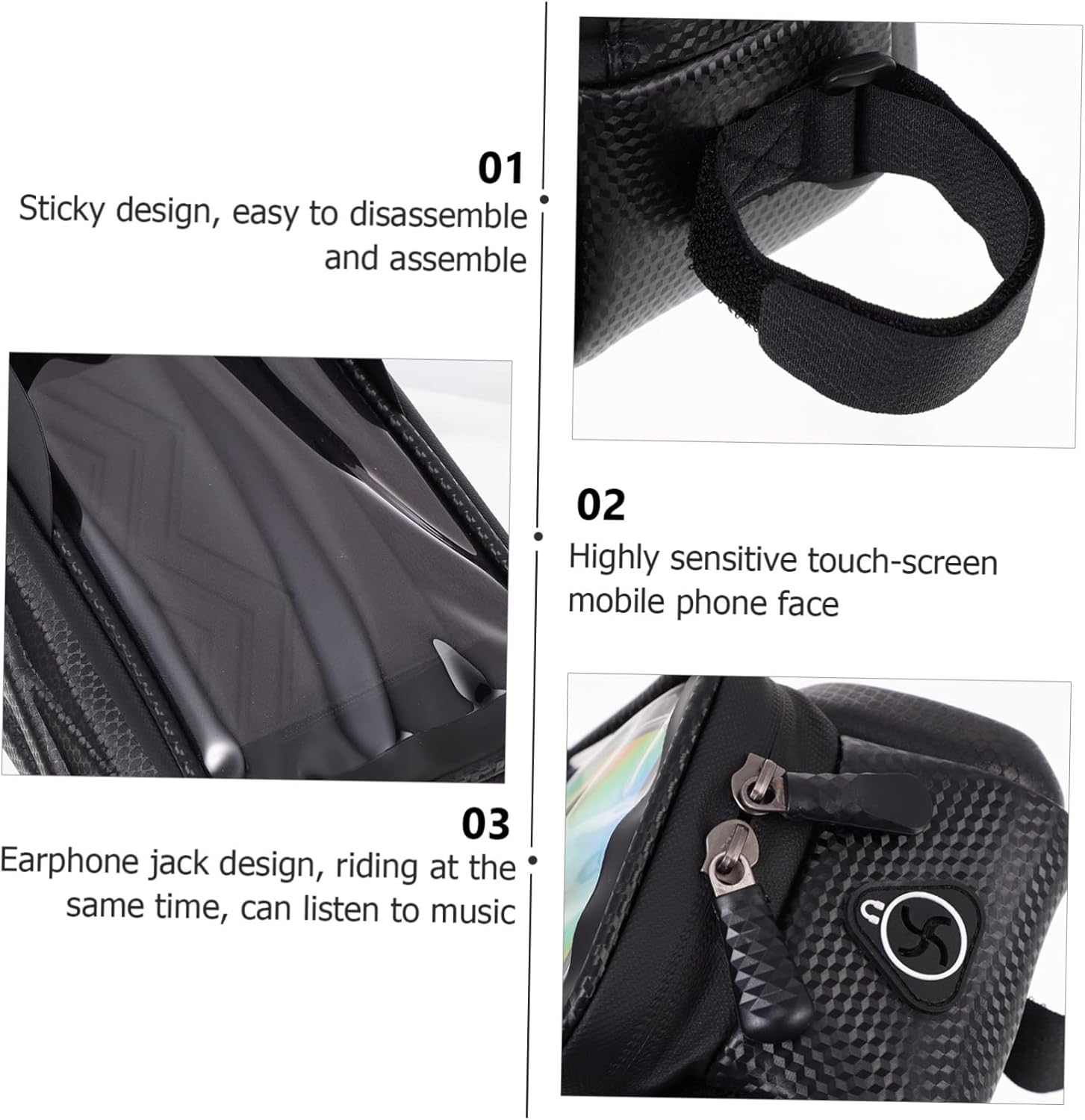 Package List 2 x Cycling Mobile Phone Bag Features - With reasonable capacity, it can help you to store your phone, cash, keys, cards during your riding Bike Saddle Bag. - Color: Black Phone Pouch for Bike - It is well-made of premium and sturdy materials, safe and practical for -lasting using time Phone Pouch. - Size: About 22.00X14.00X13.00cm/8.65X5.50X5 Front Frame Cellphone Bag. - You can carry tools and other small essentials in this cycling bag, very practical Front Frame Bag. - Material: EVA, PU Bike Frame Bag - When the bike bag is dirty, only need a wet towel or , keep the bag clean all the time Mobile Bag for Bike. - The bike bag is daily commute, weekend outing and holiday trip Bike Phone Container.Goods DescriptionTriangle Frame Bag It is for you.Phone Bag for Bike Are you looking for a professional, yet bike handlebar bag? Are you in search of a sturdy, trustworthy tool that can do multiple jobs at once? , ! Our premium bike bag will meet your needs