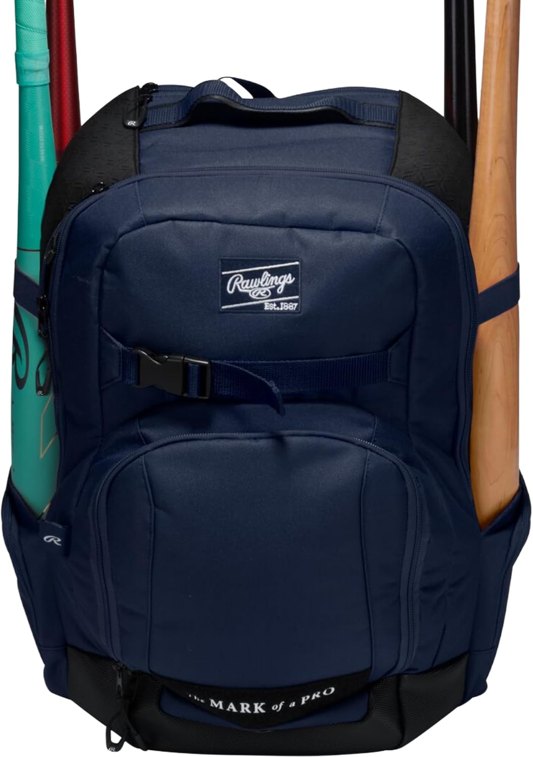 The Rawlings Journey Players Backpack is the ultimate bat pack for elite ballplayers who demand space, structure, and standout style. This backpack features four (4) neoprene-lined bat holders, an internal glove compartment, and an external clip for convenient glove storage. Inside, a large main compartment easily fits a helmet, cleats, and other game-day gear. You’ll also find dedicated pockets for valuables, turf shoes, and accessories — plus a sleek external panel for team logo embroidery. With dual side storage, durable PVC bottom panel, and the Rawlings "Mark of a Pro™" stitched proudly across the front, this bag delivers top-tier performance with every detail. Whether you're headed to practice or loading up for game day, the Rawlings Journey Players Backpack keeps you ready for every step of the season.