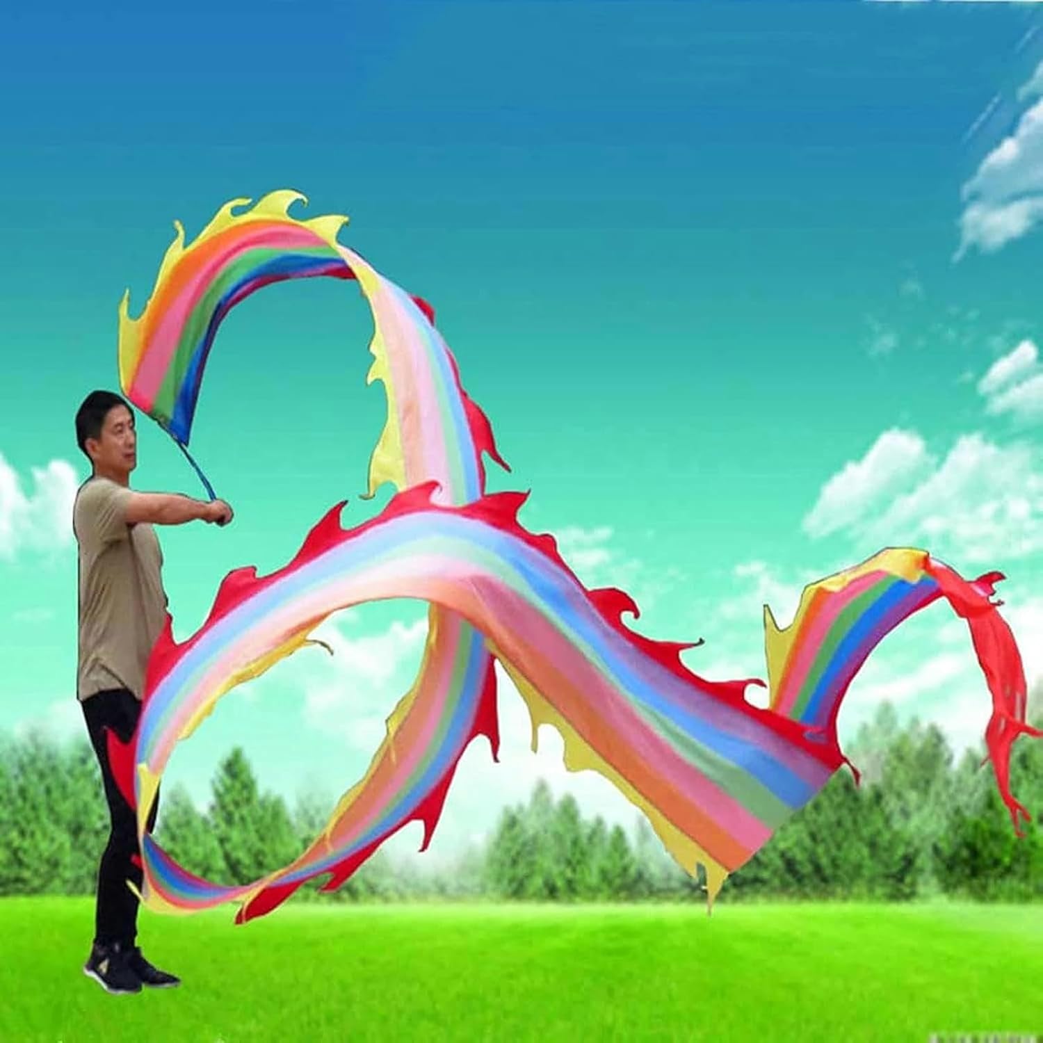 Product Name: Dancing silk dragonProduct material: rod + silk clothStyle: classic, nostalgicApplicable scene: student performanceApplicable people: students, adultsPurpose: fitness and entertainment performanceSize: 6M, 8M, 10MNotes:1cm=0.39in1. Due to different light and shooting angles, there may be slight color difference, please understand.2. Please confirm the color before purchg.3. Product photos do not include products other than the product.