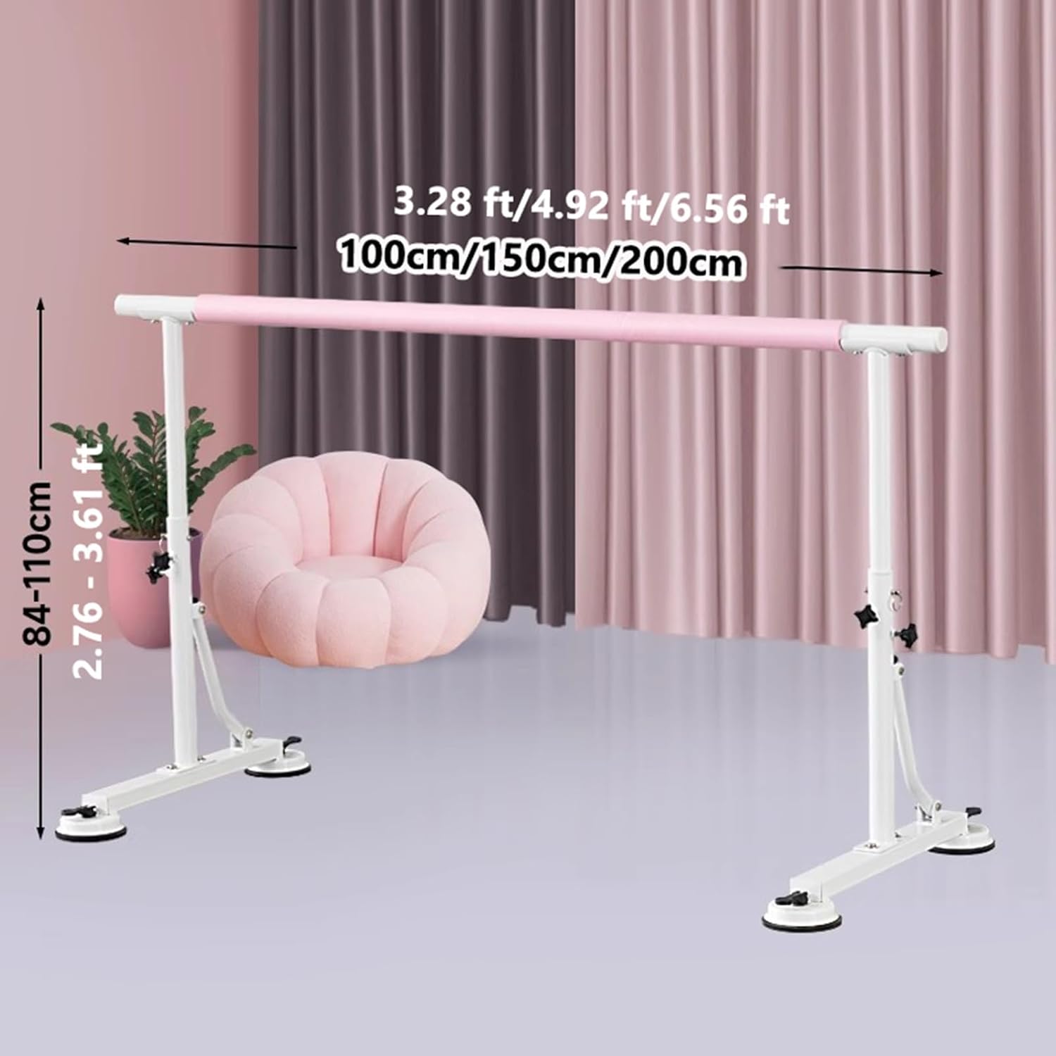 Key Features:Durable Construction: Built to withstand deformation and breaking, ensuring long-lasting performance.Easy Assembly: All necessary parts are included for a quick and convenient setup.Height Adjustability: Easily adjustable from 2.76 ft to 3.61 ft, accommodating users of different heights and ages.Non-Slip Stability: Equipped with rubber feet that provide enhanced grip on any surface, keeping the barre securely in place.Comfortable Grip: The crossbar features a foam grip, ensuring comfort during use for extended periods.Versatile Use: Perfect for ballet, stretching, and various fitness routines, making it suitable for home workouts, dance studios, and educational settings.