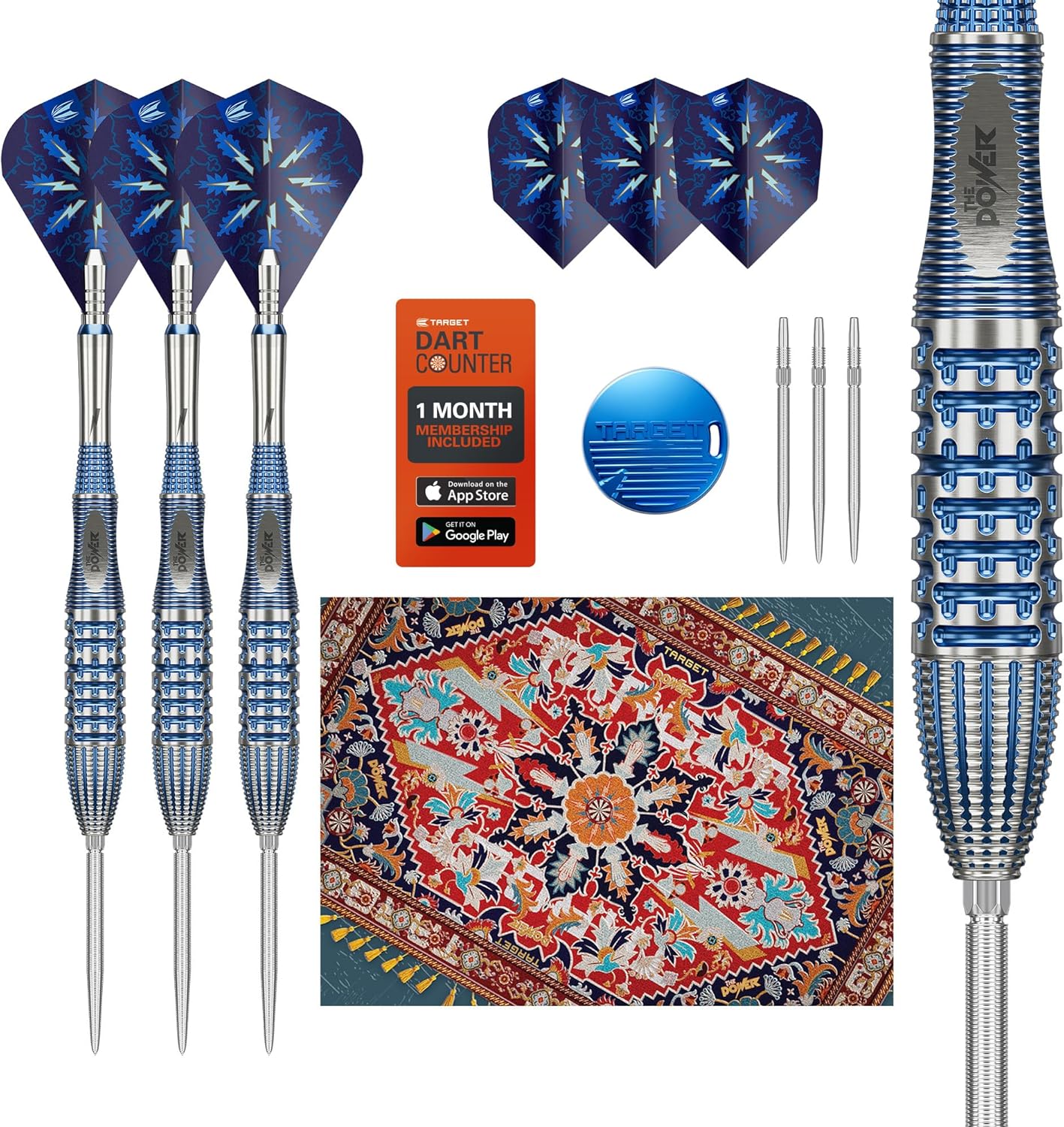 | Included Components | 3x 95% Tungsten Barrels 3x Swiss Nano Points (Silver, 30mm) 3x Swiss Nano Points (Silver, 35mm) 3x Power Titanium Gx2 Shafts (Short, 22.4mm) 3x Power Gx2 Vapor S Flights 3x Power Gx2 No.6 Flights 1x Premium Swiss Point Tool 1x 1 Month DartCounter App Subscription |