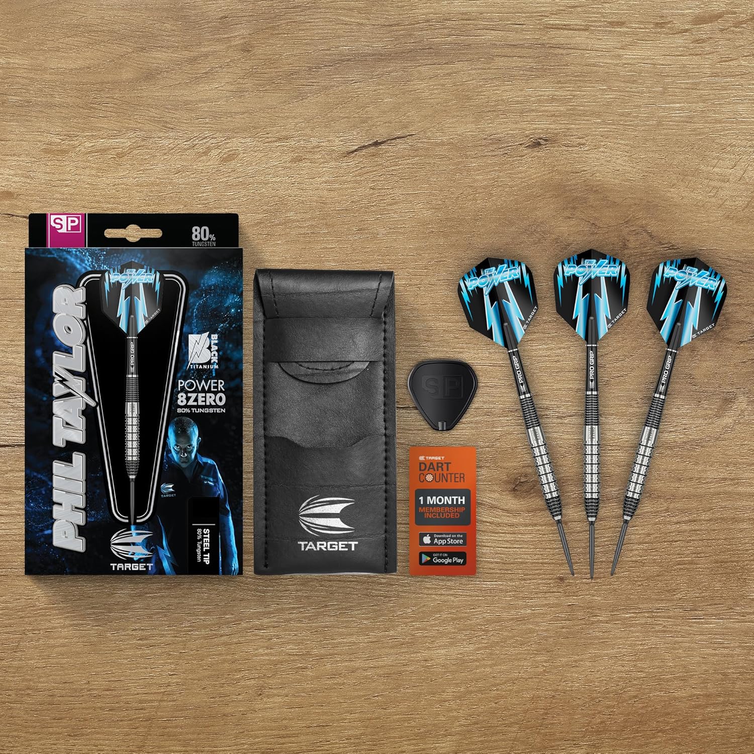 The Power 8-Zero 2 Steel Tip Darts are crafted in collaboration with 16x World Champion Phil Taylor, designed for players seeking a high-performance grip and precision. The 80% tungsten barrel features radial grooves and undergoes an advanced machining process using a hand-loaded Japanese CNC lathe. Each barrel is then intricately enamelled by hand before being completely re-machined, resulting in a distinctive grip that balances control and consistency. The darts are equipped with 26mm Black Swiss Points, featuring a patented locking system that allows for quick and easy point replacement using the included Swiss point tool. The advanced taper and thread technology ensure a secure fit, providing stability and precision throughout play. The Pro Grip Shaft is specially moulded for a seamless lead-in and provides excellent flight gripping strength, minimizing fallouts. Crafted from a durable nylon compound, the shaft also features a nib by the shaft petals for easy flight insertion. Completing the set are the P8Z2 Vision No.6 Flights, made from a durable 100-micron material, featuring a spot UV print, which adds an additional layer of coating to the flight, improving shaft grip and adds an extra layer of protection against wear and tear to the printed design. Keep your darts and accessories secure with the included bar wallet, designed for convenient storage and protection when not in use. Enjoy 1 month access to DartCounter, the world’s leading darts scoring app and player community. Record your scores, watch live games, and play online with friends from anywhere in the world. Enjoy features like online camera play and a variety of popular dart games.