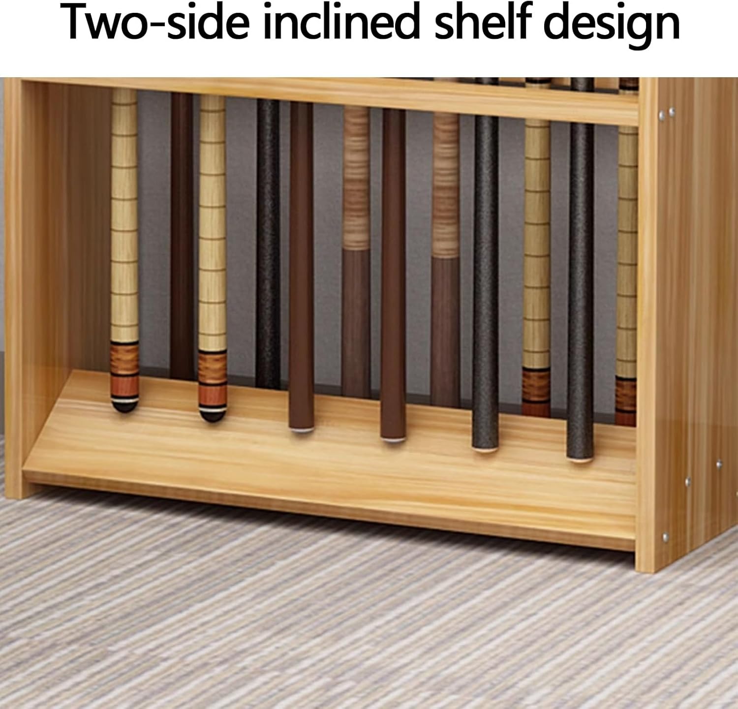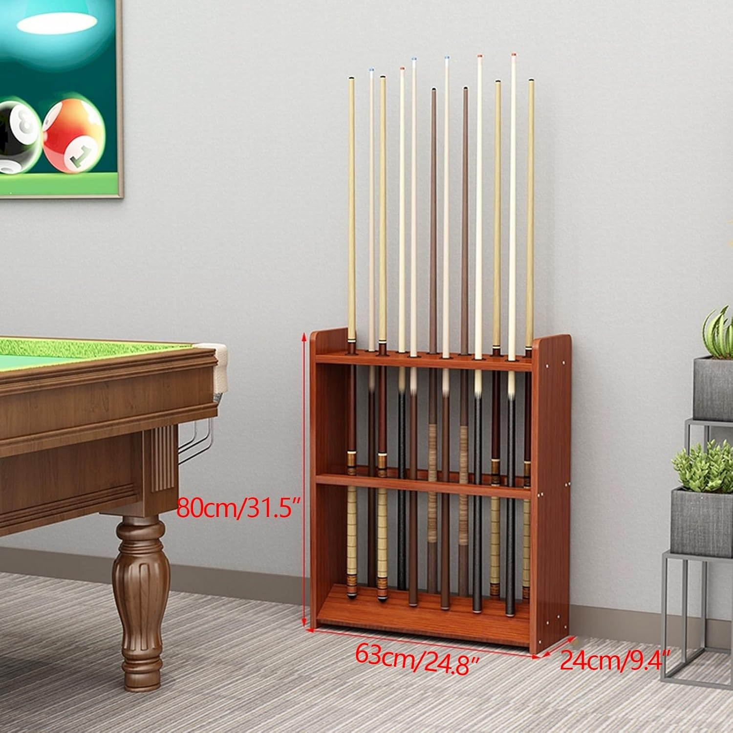 Introducing our Pool Stick Holder Floor Stand Corner, the perfect addition to your billiard room, game room, or bar area. This stylish and functional pool cue holder is designed to keep your space organized while enhancing its aesthetic appeal. Constructed with durability in mind, this holder offers ample storage for all your essential pool table accessories, ensuring they are easily accessible when you need them.The thoughtful rounded corner design minimizes the risk of bumps and scratches when retrieving your cue sticks, making it a safe choice for busy game rooms. Crafted from high-quality, wear-resistant materials, our holder preserves the integrity of your cues, preventing any damage during storage.Featuring an inclined layer design on both sides, this pool stick holder not only boosts stability but also supports a greater load capacity, ensuring your cues are stored securely. Its elegant appearance complements any décor, adding a touch of sophistication to your space.Specifications:Name: Pool Cue Holder Floor StandMaterial: Medium Density FiberboardOverall Product Size: 24.8"W x 9.4"D x 31.5"H (63 x 24 x 80 cm)Upgrade your game room with our Pool Stick Holder Floor Stand and enjoy a clutter-free environment while showcasing your love for billiards.