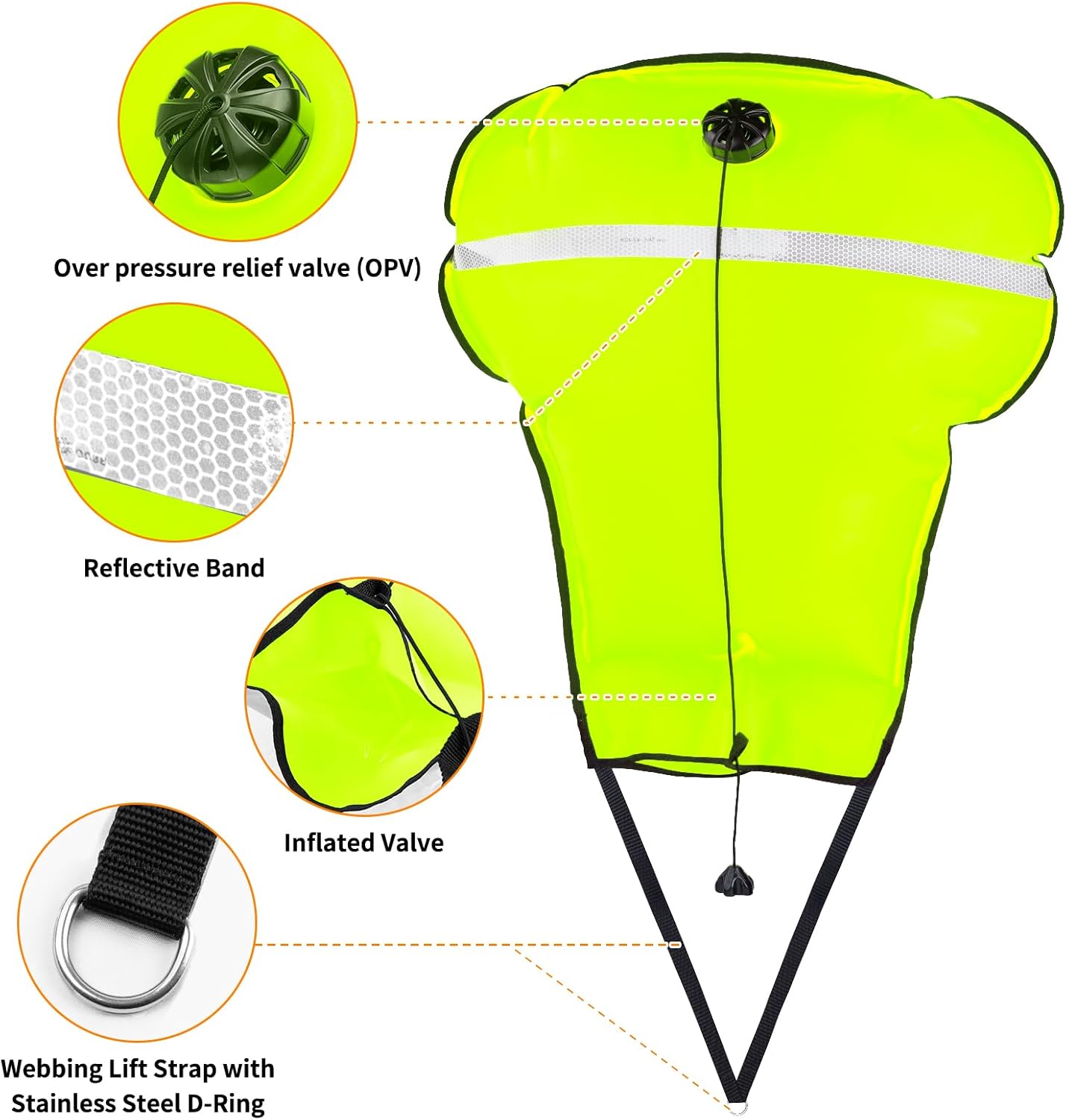 Dawitrly Diving Lift Bags, High Visibility 70lb Nylon Over Pressure Valve Scuba Salvage Lift Bag with Open Bottom, Reflective Band and Safety Gear for Underwater Scuba Dive Snorkeling