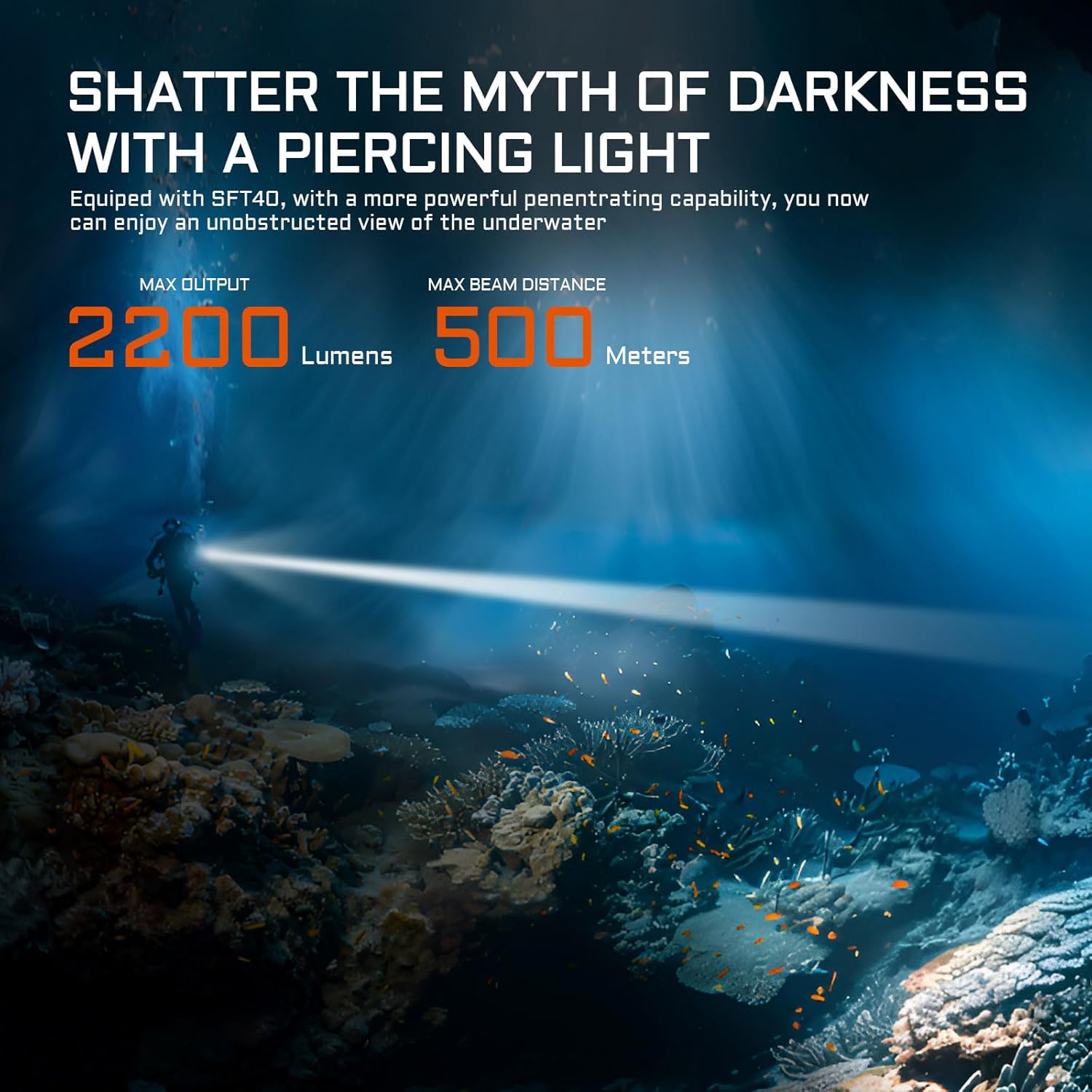 | Included Components | D20 2.0 Dive Flashlight(Battery Included) x 1, Lanyard, O-rings x 2, Type-C Cable x 1, User Manual x 1 |