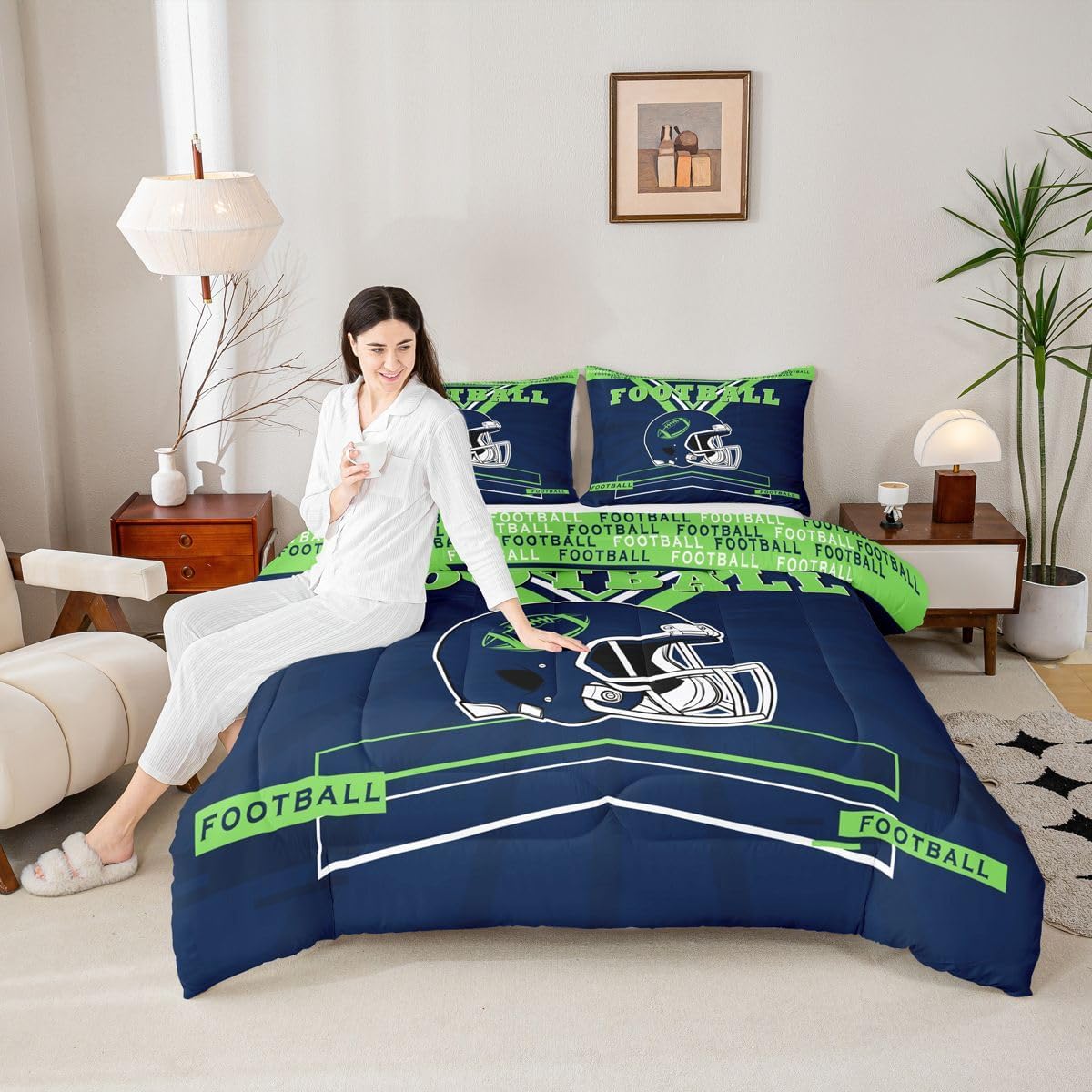 Size Information Toddler size: 1 Comforter 42"W x 58"L, 1 Quilted Pillowcase 30"W x 20"L. Twin size: 1 Comforter 68"W x 90"L, 1 Quilted Pillowcase 30"W x 20"L. Full size: 1 Comforter 79"W x 90"L, 2 Quilted Pillowcases 30"W x 20"L. Queen size: 1 Comforter 90"W x 90"L, 2 Quilted Pillowcases 30"W x 20"L. King size: 1 Comforter 104"W x 90"L, 2 Quilted Pillowcases 36"W x 20"L. Versatility We have many kinds of styles for you to choose. You can easily find a product that suits the style of your room. The item is not only Suitable for your home, bedroom, guest room, living room, or rv, your families, friends, relatives, boyfriend,girlfriend. Modern Design The luxury aesthetic comforter set is made reactive printing and dyeing process. The pattern is clear, the color is bright, which will not fade after repeated washing. Personalized As a manufacturer of digital printed home textiles, we follow current trends and bring you the latest and stylish home textile products. The item will make the room decorated in exquisite taste. We sincerely hope you will love the bed set.