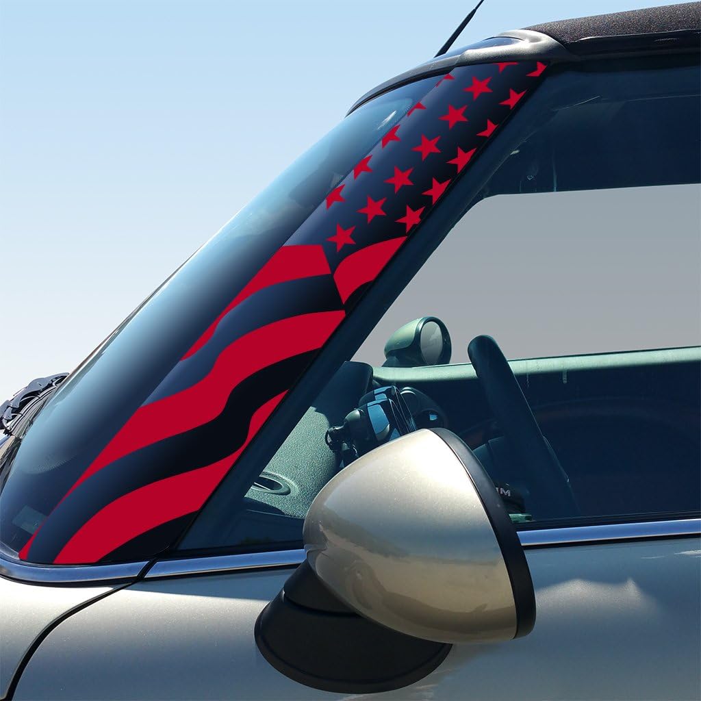 The glossy black pillars of the MINI provide a perfect canvas for this unique decal. Dress up your MINI and accent with this US Flag design. This decal is contour cut from burgundy vinyl, so the background is the color of the pillar! Check out my other listings for more fun car graphics! - Decals fit the following MINIs: -R55 (08-13 Clubman and Clubman S) -R56 (07-13 Hardtop Cooper and Cooper S) -R57 (09-13 Convertible Cooper and Cooper S). For other MINI Pillar Decals, please see my other listings. You'll get a set of 2, one for the driver side and one for the passenger side pillar. Installation: Clean the surface thoroughly. Peel away the decal backing, and hold the decal by the edges. Carefully position, then press into place on the surface. Smooth, working from the center outward toward the edges. Carefully peel away the transfer sheet. Note: Apply in temperatures 45-90 degrees Fahrenheit. Use a soft cloth to smooth out the decal before removing the transfer sheet to help in adhering and to remove bubbles that might form beneath the vinyl.