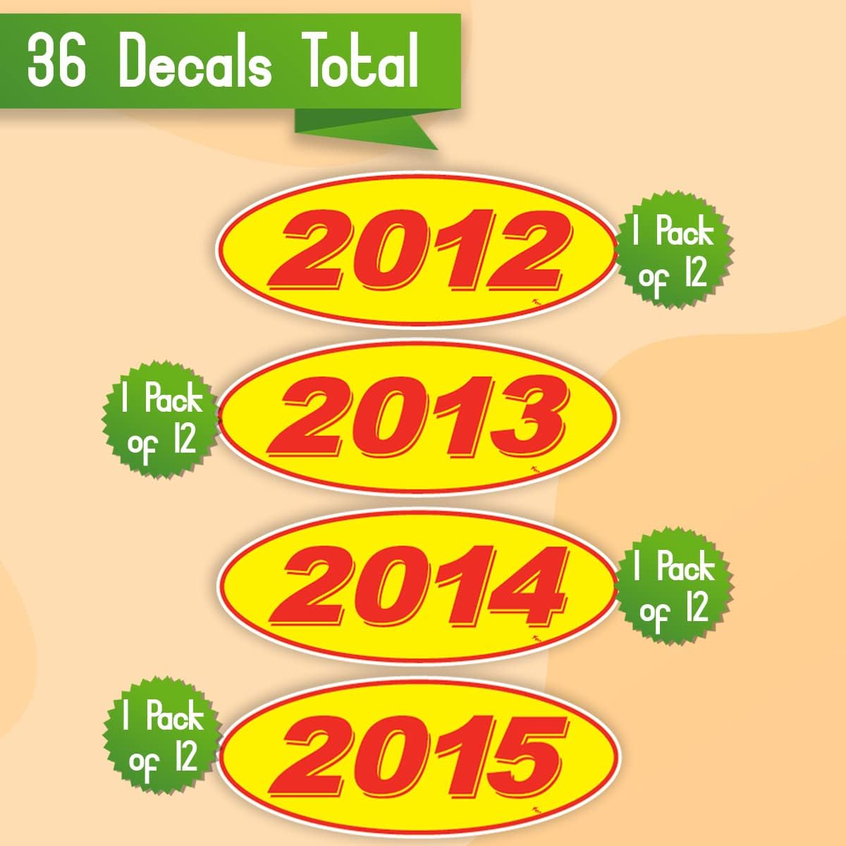 | Style | 4 Packs Oval Year Yellow and Red 2012 2013 2014 & 2015 |