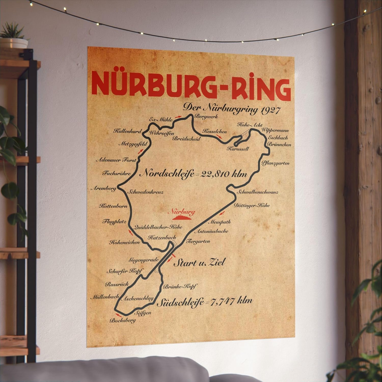 🏁 LIMITED EDITION – Only 100 pieces available! This vintage-style poster pays homage to one of the most revered racetracks in motorsport history — the Nürburgring, originally opened in 1927 in the Eifel Mountains of Germany. Known as the “Green Hell” by Jackie Stewart for its brutal complexity and length, the Nürburgring’s full original layout stretched over 30 kilometers, combining the infamous Nordschleife (North Loop, 22.810 km) and Südschleife (South Loop, 7.747 km). The design features a historically accurate map of the entire 1927 track, with every legendary turn and section labeled: from Karussell and Adenauer Forst to Bergwerk and Schwedenkreuz. Printed on a background of aged, yellowed paper, the piece evokes the feel of an old racing blueprint — a perfect tribute to early 20th-century racing heritage. The Nürburgring has seen it all: pre-war Grand Prix duels between Mercedes-Benz and Auto Union, post-war dominance by Ferrari, and unforgettable moments like Juan Manuel Fangio’s miraculous 1957 win in the Maserati 250F or Niki Lauda’s fiery crash in 1976, which forever changed Formula 1 safety standards. Over the decades, drivers like Stirling Moss, Jackie Stewart, Jim Clark, Ayrton Senna, and Michael Schumacher all etched their names into Nürburgring history, as did iconic machines from Porsche, BMW, and Audi. This poster is more than art — it’s a historical document. A perfect piece for any vintage racing aficionado, Nürburgring enthusiast, or motorsport historian. EU representative: HONSON VENTURES LIMITED, 3, Gnaftis House flat 102, Limassol, Mesa Geitonia, 4003, CY Product information: Generic brand, 2 year warranty in EU and Northern Ireland as per Directive 1999/44/EC Care instructions: If the print does gather any dust, you may wipe it off gently with a clean, dry cloth.