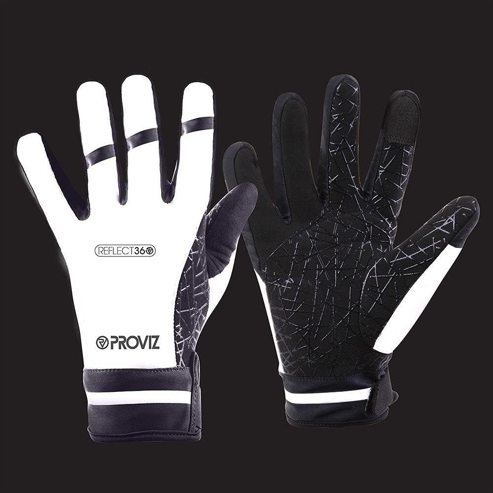 These cycling gloves feature a 100% reflective outer shell, ensuring your hand signals are visible at night. They offer a secure, non-slip grip with silicone web grips and padded palms. The soft brushed micro-fleece lining keeps hands warm while allowing excess heat to escape. The adjustable hook and loop cuff provides easy adjustments and wind protection. The first finger is touchscreen compatible, allowing device use without removing the gloves.
