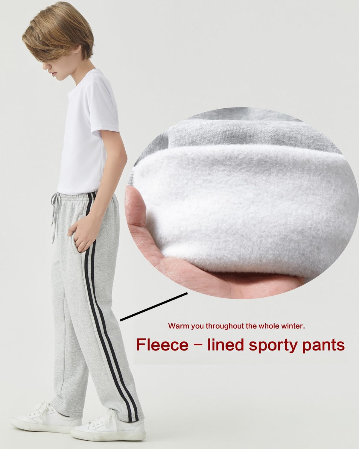【Soft Fleece Lined & Heavyweight 】 Soft fleece and adjustable drawcord provide added comfort. These thick joggers keep your boy comfortable during activities or casual wear, making them a must-have in his warm workout wear collection 【Stylish & Modern Look】 Our boys sweatpants come in a variety of attractive color choices, being easy to mix and match with your favorite t-shirt and sneakers! Get a package of 6 stylish boys joggers, They can be worn as pajamas or activewear, perfect for school, playing sports, or just lounging 【Comfort Fit & Optimal Design】 Whether relaxing or working out, our fleece joggers’ pull-on elastic waist with adjustable drawstring provides the style, perfect fit. Perfect for your little boy to keep his hands in sweatpants pockets when it's cold outside, or for storing his wallet, keys, and other essentials 【Multiple Occasions】These fleece sweatpants are your perfect companions, whether you're lounging at home or engaging in outdoor activities. They are ideal for basketball training, football practice, soccer, jogging, cycling, climbing, hiking, and more. These joggers make an excellent gift for sons, grandsons, brothers, nephews, and friends who value comfort and style 【The Possibilities Are Endless】 Upgrade your boy's wardrobe with these trendy and versatile Boys’ Sweatpants – 6 Pack Active Jogger Pants with Pockets. Whether he's on the move or taking it easy, he'll appreciate the comfort and style these joggers bring to his daily life