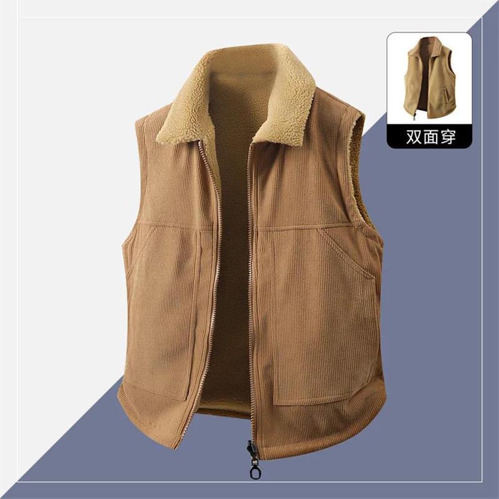 Material:CottonClosure Type:ZipperCollar:Turn-Down CollarWhether Full Opening:YesThickness:FleeceApplicable Scene:ShoppingDecoration:PocketsType:LoosePattern Type:SolidLining Material:PolyesterHooded:NoOuterwear Type:VestGender:Men