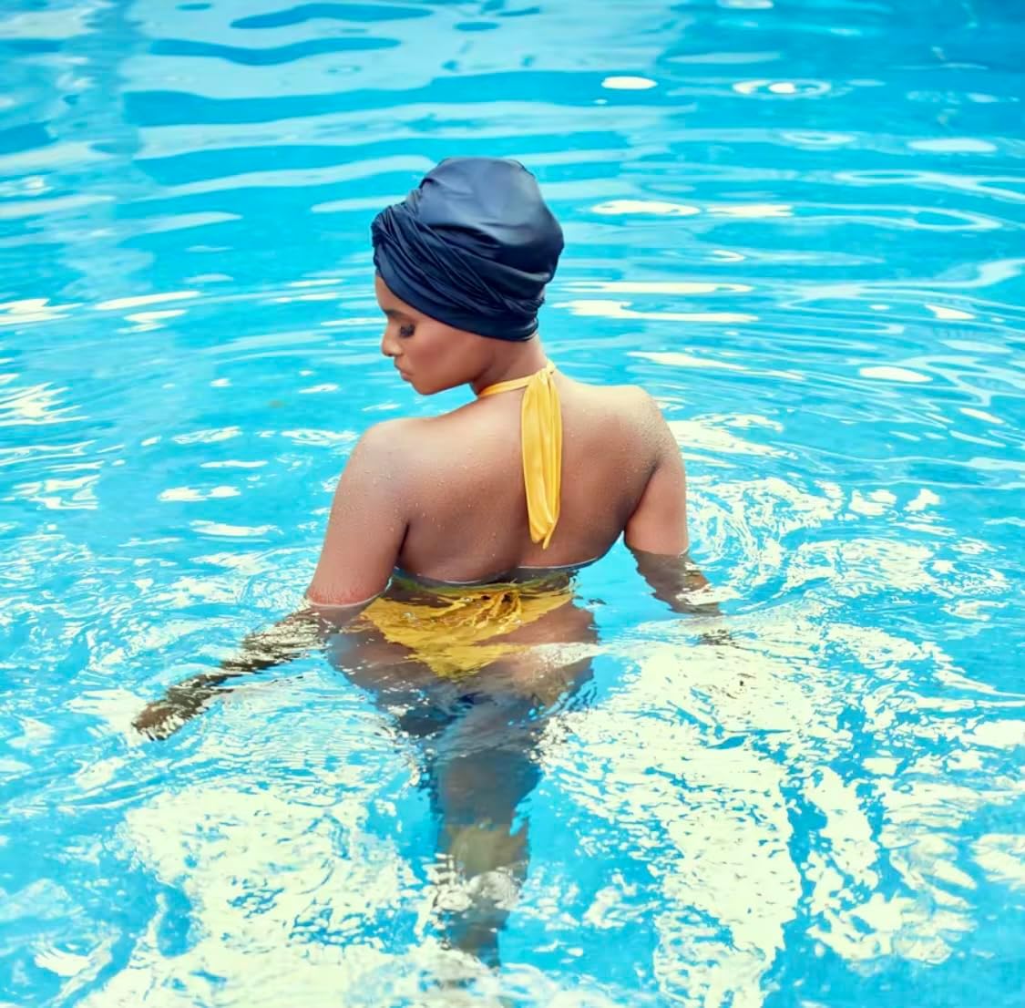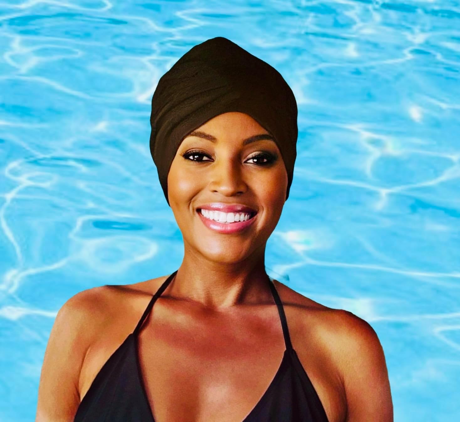 Waterproof Swim Turban, Extra Large Swimming Cap. Keeps hair dry. Silicone lining with stylish swimsuit fabric exterior.