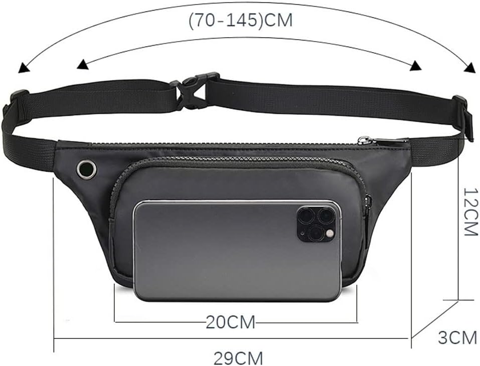 Waist Bag Sports Belt Pouch Mobile Phone Case Men Women Hidden Pouch Gym SportsBags Running Belt Waist Pack.Well-chosen lightweight and elastic material. Small Pocket with enough space for your essential. Free your hands during your running. You can enjoy your music during running, Relax your self without any bother, No worry about that your items gotten wet after running.Abric and excellent workmanship, retro, Luxury which shows your outstanding temperament.It lightweight and it sits nicely on your waist and isn't to chunky or clunky on body frame.Fashionable earphone hole is clever and convenieni.Package Include:1 x Sport Waist BagNotice:1.1cm=10mm=0.39inch.2.Please allow 1-2mm error due to manual measurement and make sure you do not mind before ordering.3.Please understand that colors may exist chromatic aberration as the different placement of pictures.After sale question:This men's and women's waist bag is suitable for most outdoor activities, such as running, hiking, exercising, traveling, walking the dog, etc. If you have any questions, please feel free to contact us and we will get back to you as soon as possible