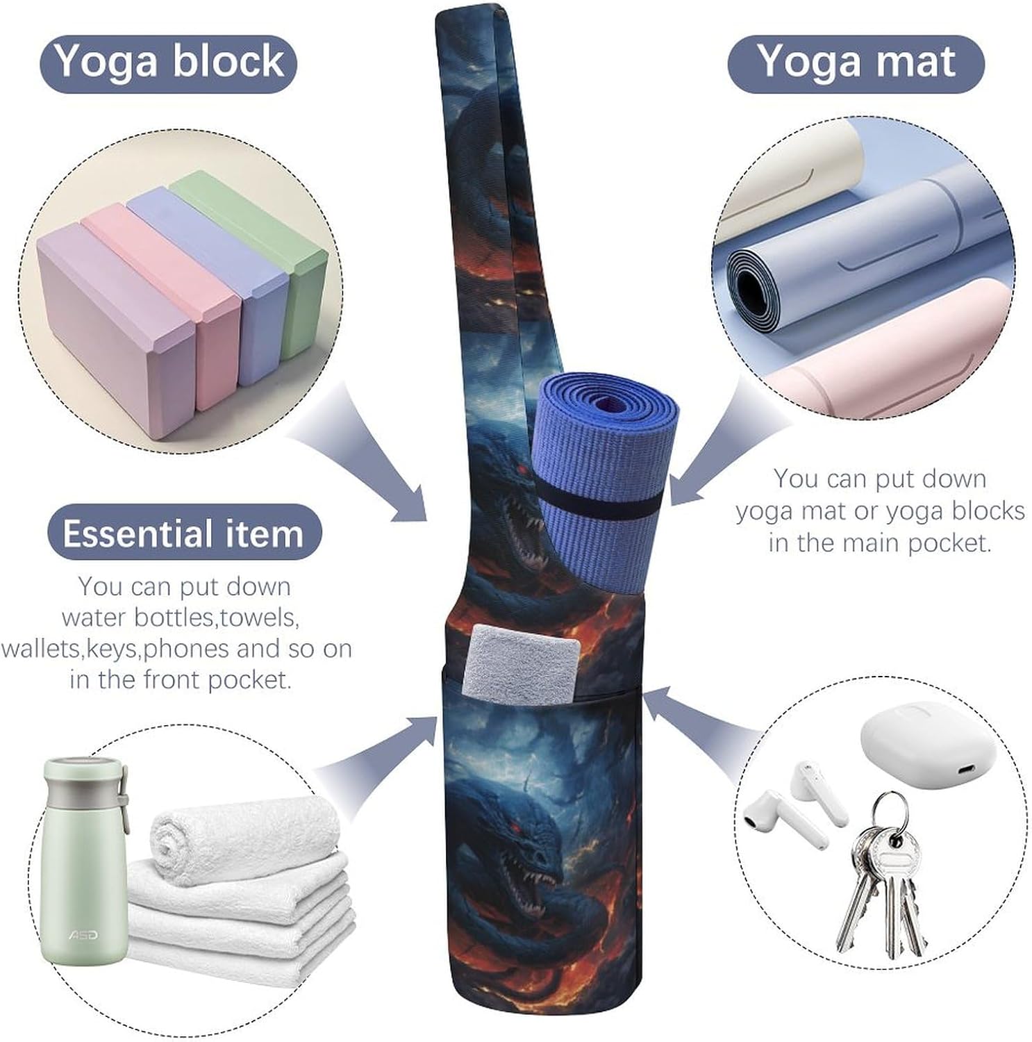 Can be used as a yoga mat bag, gym bag or Pilates bag, it is an ideal choice for yoga lovers, parents who balance fitness and travelers who need a reliable yoga gym bag Owning an excellent Black Snake in Flames printed Travel yoga gym bag can make your yoga practice easier. You don't have to worry about dirt, dust and damage because your yoga mat will be protected, and after the yoga class, just throw everything into the yoga bag and you're ready to go