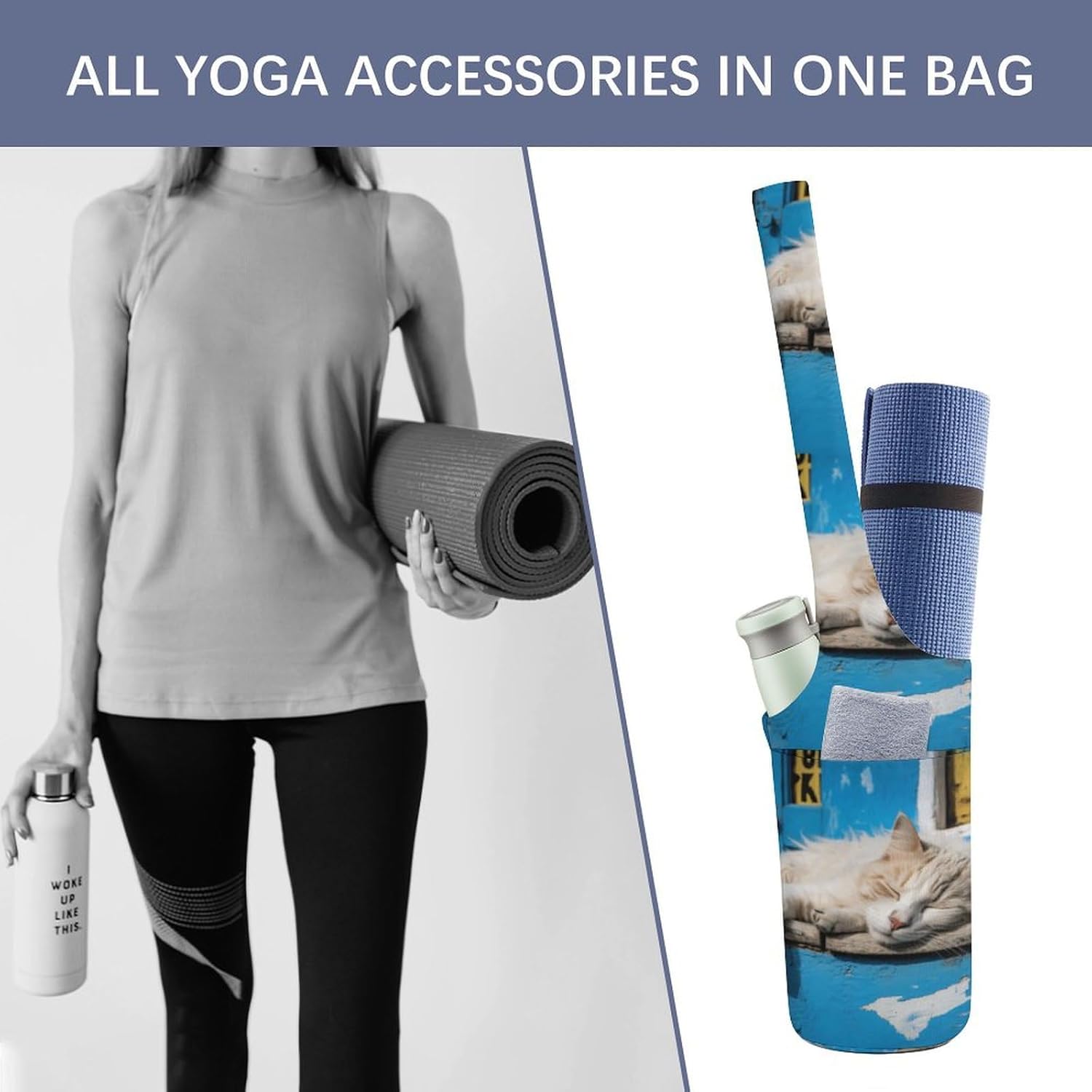 Can be used as a yoga mat bag, gym bag or Pilates bag, it is an ideal choice for yoga lovers, parents who balance fitness and travelers who need a reliable yoga gym bag Owning an excellent Sleeping Little Cat printed Travel yoga gym bag can make your yoga practice easier. You don't have to worry about dirt, dust and damage because your yoga mat will be protected, and after the yoga class, just throw everything into the yoga bag and you're ready to go