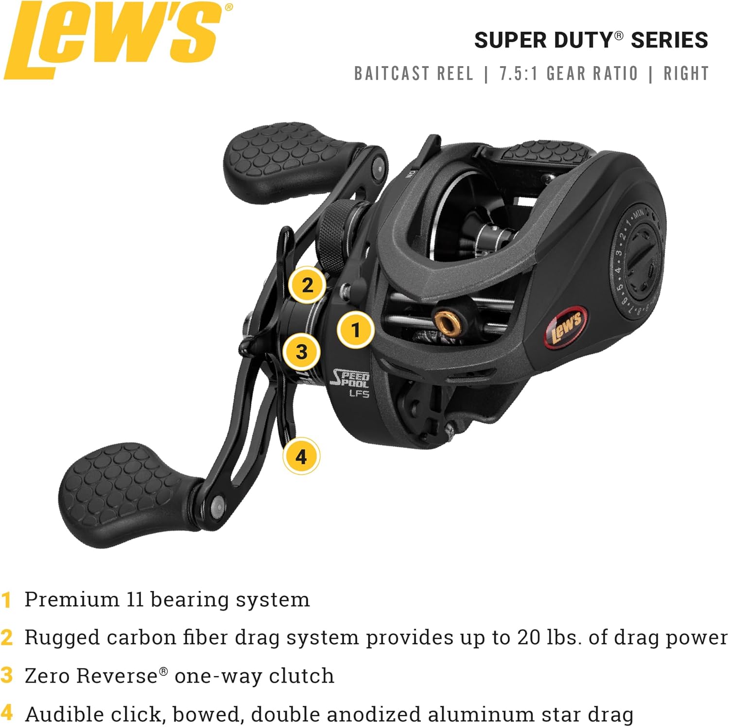 | Included Components | Super Duty LFS 7.5:1 Right Hand Baitcast Reel w/Flipping Switch |