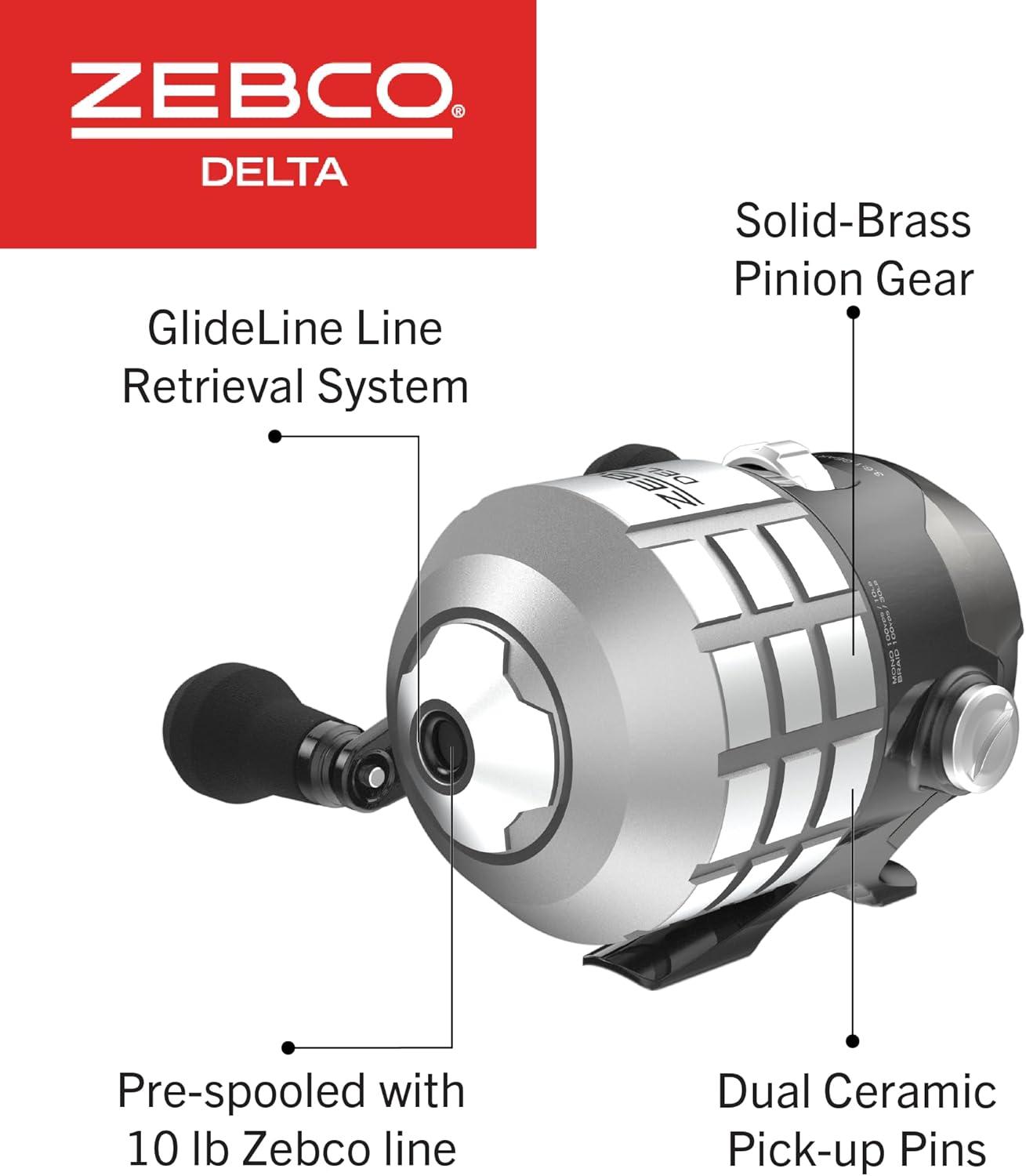 | Model Name | Zebco Delta Spincast Fishing Reel, Right or Left-Hand Retrieve, Dual Ceramic Pick-Up Pins, Pre-Spooled with Zebco Fishing Line, Braid Ready, Cool Gray |