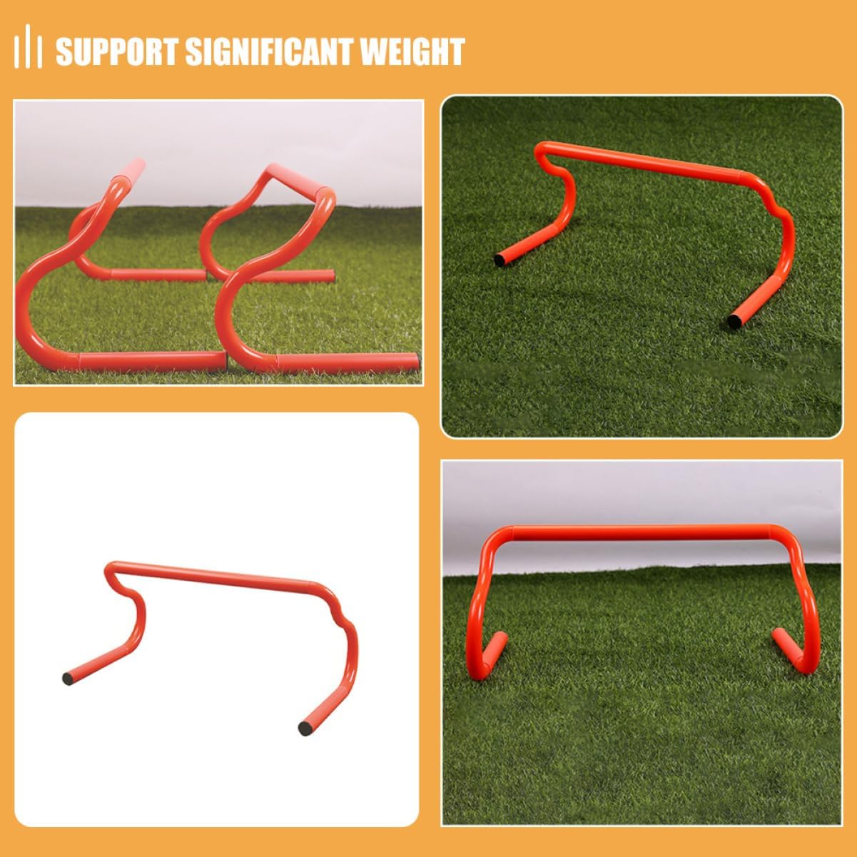 Package List 3 x detachable hurdles Features -Material:PVC soccer training equipment -Flexible configuration: design allows you to combine and adjust the hurdles to create various training drills, enhancing your workout versatility football hurdles for drills -Color:Orange dog hurdles - construction: built with durable materials, these hurdles are designed to endure heavy use and provide reliable performance over training equipment -Quick setup: the hurdles can be assembled in minutes without the need for tools, allowing you to focus more on your training and setup agility training hurdles -Multipurpose: great for speed and agility training in sports like soccer, basketball, and football, as well as for ' exercise routines and dog agility courses football workout equipment -Size:49.00X23.00X20.00cm/19.26X9.04X7.86in soccer hurdles -Convenience: designed for easy transport, these hurdles can be quickly disassembled and packed away, making them ideal for travel and outdoor activities baseball training equipmentGoods Informationplyometric equipment Lightweight and portable, they can be easily transported to any training location, making them a convenient addition to your sports equipment.soccer agility training equipment These versatile speed hurdles are excellent for basketball training, helping players to develop power and quick reflexes.quarterback training equipment Use them during practice sessions to simulate game scenarios and your ability to navigate through defenders