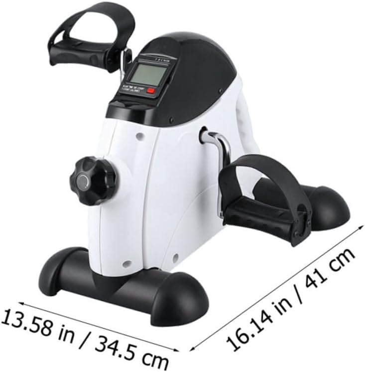 Package Include 1 x Exercise Pedal Bike Characteristics - Color: White Mini Fitness Bike. - Material: Plastic Exercise Machine. - Size: 41.00X34.50X32.00cm/16.11X13.56X12.58 inch Plastic Fitness Bike. - Adjustable resistance for exercise, easy to adjust the intention by rotating the knob Plastic Exercise Pedal Bike. - The adjustable foot band can flexibly adapt to users' feet of different sizes to meet different needs Mini Bike Pedal Stepper. - Mini bike pedal exerciser is used for arms and legs cycling exercise at office or home to increase circulation and tension Fitness Bike. - Multifunctional LCD monitor display, easy to read LCD screen displays , time, speeds, distance and calories burned Bike Pedal Stepper. - You can also reset by long pressing the red button. An extra strap is provided for securing Plastic Exercise Bike.Goods DescriptionPlastic Exercise Bike Simply place machines on the floor or even under your desk and cycle to work leg muscles and burn calories.Plastic Exercise Machine Suitable for office workers who need s, as well as people who need exercise.Mini Exercise Pedal Bike The pedaling bike can also be placed on a tabletop to stimulate circulation and tone arm muscles