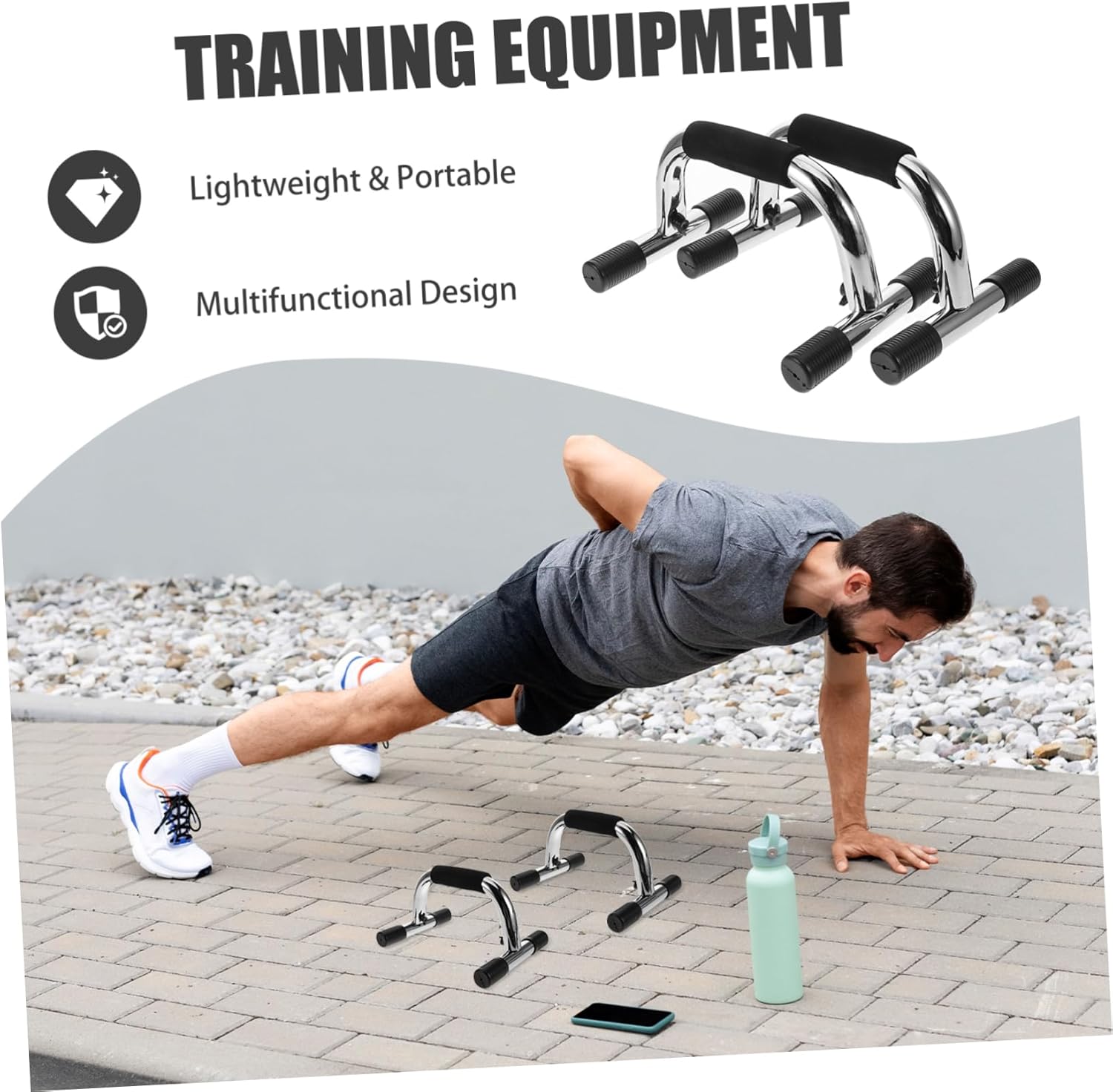 Package List 1 pair of push-up stands Characteristics -Versatile design: allows for a variety of fitness exercises, making it a multifunctional piece of equipment for comprehensive workouts portable home gym system -Material:Carbon Steel pushup handles -Color:Silver fitness equipment -Essential home fitness: a musthave for home fitness enthusiasts, helping to sculpt a good body with consistent use workout accessories for men -Size:25.00X17.00X9.00cm/9.82X6.68X3.54in push up board for men -High load capacity: constructed with heavyduty steel in an L shape, ensuring stability and durability for intense workout sessions core workout equipment -Suitable for all heights: adjustable to accommodate users of different heights, making it a versatile choice for the entire family calisthenics parallettes -Indoor convenience: designed for indoor use, providing a exercise at home without the need for a gym membership strength trainingGoods Informationupper body workout equipment Simply unfold the board, place it on the floor, and use the anti-slip grips to perform a variety of push-up exercises that target different muscle groups, enhancing your upper body strength and core stability.excersing equipment at foldable design makes it easy to store and transport, good for use , office, or gym.push up handle The push up board is an essential piece of exercise equipment for home workouts, offering a versatile solution for strength training
