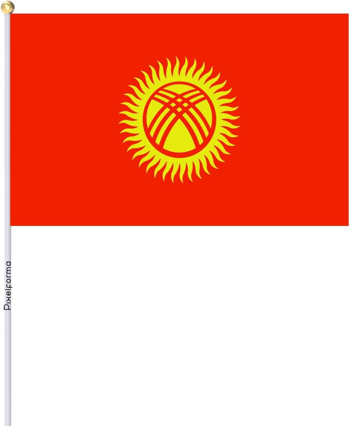 VARIOUS SIZES: Choose from our three available sizes to find the one that best suits your use. We offer 14x21cm, 20x30cm and 30x45cm flags, offering a range of options to suit your preferences. POLYESTER MATERIAL - The flags are made of high quality polyester, which makes them durable, weather resistant and suitable for outdoor use. The polyester also ensures a crisp and vibrant colour print. Suitable quantities: We offer two quantity options to meet your specific needs. Choose between a 100 piece pack or a pack of 50 pieces, depending on the event or intended use. Versatility of use: Whether to show your support at a sporting event, to decorate a party, to mark a special occasion or simply to display your patriotism, these mini flags are versatile and can be used in a variety of ways. Ease of Display: Each flag is equipped with a strong plastic pole that makes it easy to hold and place them wherever you want. They are lightweight and easy to handle. Bring a splash of colour and festive spirit with our set of mini polyester flags. Order now and show your pride in a compact and stylish way! Flag of kyrgyzstan