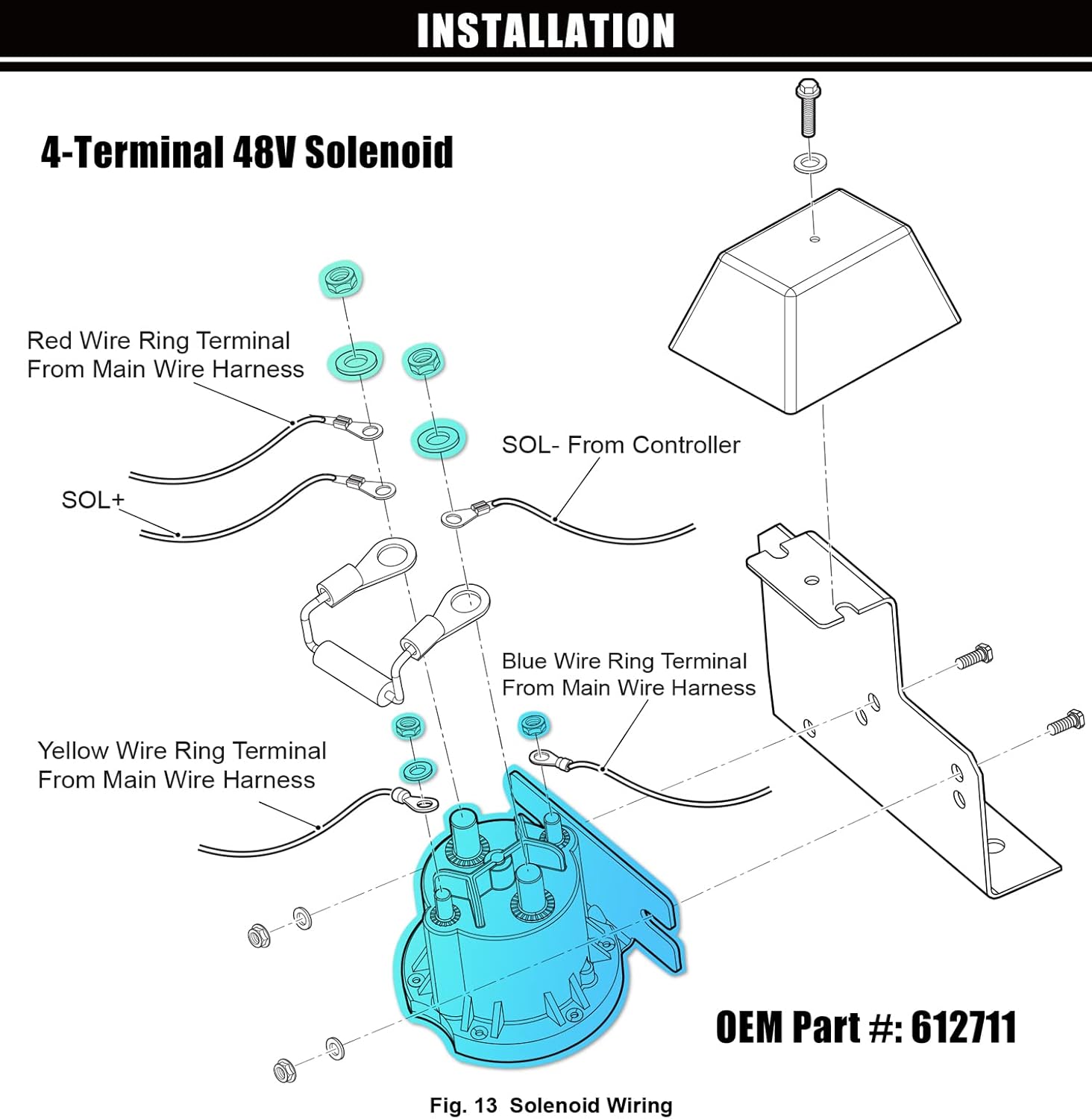 Model: EZGO TXT Solenoid, 48V Golf Cart Solenoid, Fit E-Z-GO Electric 48V TXT 2010-Up & All 48V MPT 800/1000 Vehicles Golf Cart, OEM# 612711. Please feel free to contact us if you have any question of the item. We will response you as soon as possible.