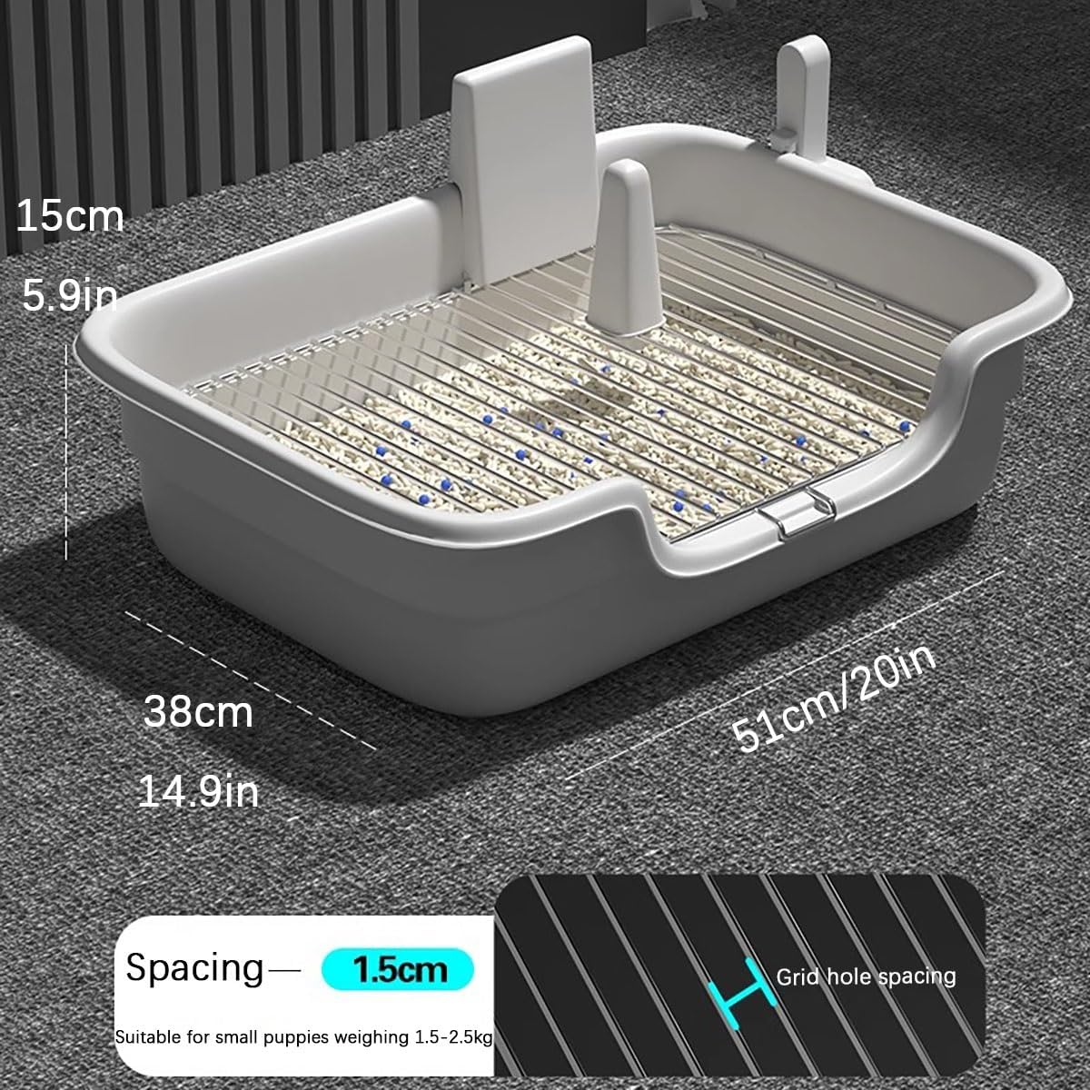 Welcome to my storeThis dog toilet features a three-sided raised fence design to prevent urine splashes. It is hygienic and easy to clean. Made of selected PP plastic, solid and practical.The indoor dog potty bowl is also equipped with a post that can simulate the dog's usual urination habits, making this toilet easier for the dog to use.With this dog toilet, you no longer have to worry about your dog's urine getting on the floor.Specification:Doggie Potty StationName: Indoor Dog Training ToiletMaterial: PPSize: 51×38×15cm/20×14.9×5.9in Packing List:Indoor Dog Training Toilet x 1 Urine column x 1At the same time dog toilet is also a great gift; Suitable as dog birthday gift, holiday gift, christmas.Add to cart to buy! You will bring different happiness to your dog!Kind tips:1. About color ------ Please note that due to the display or lighting when shooting, there may be slight color differences between the real object and the product.2. About size----- Due to different measurement methods, there may be some errors.Please understand.I wish you a happy shopping!Thank you!